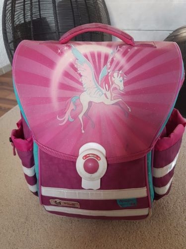 dort auch noch mit einem Stück Klett fixieren. Mit zwei Reisetaschen, Schulranzen(!) etc.