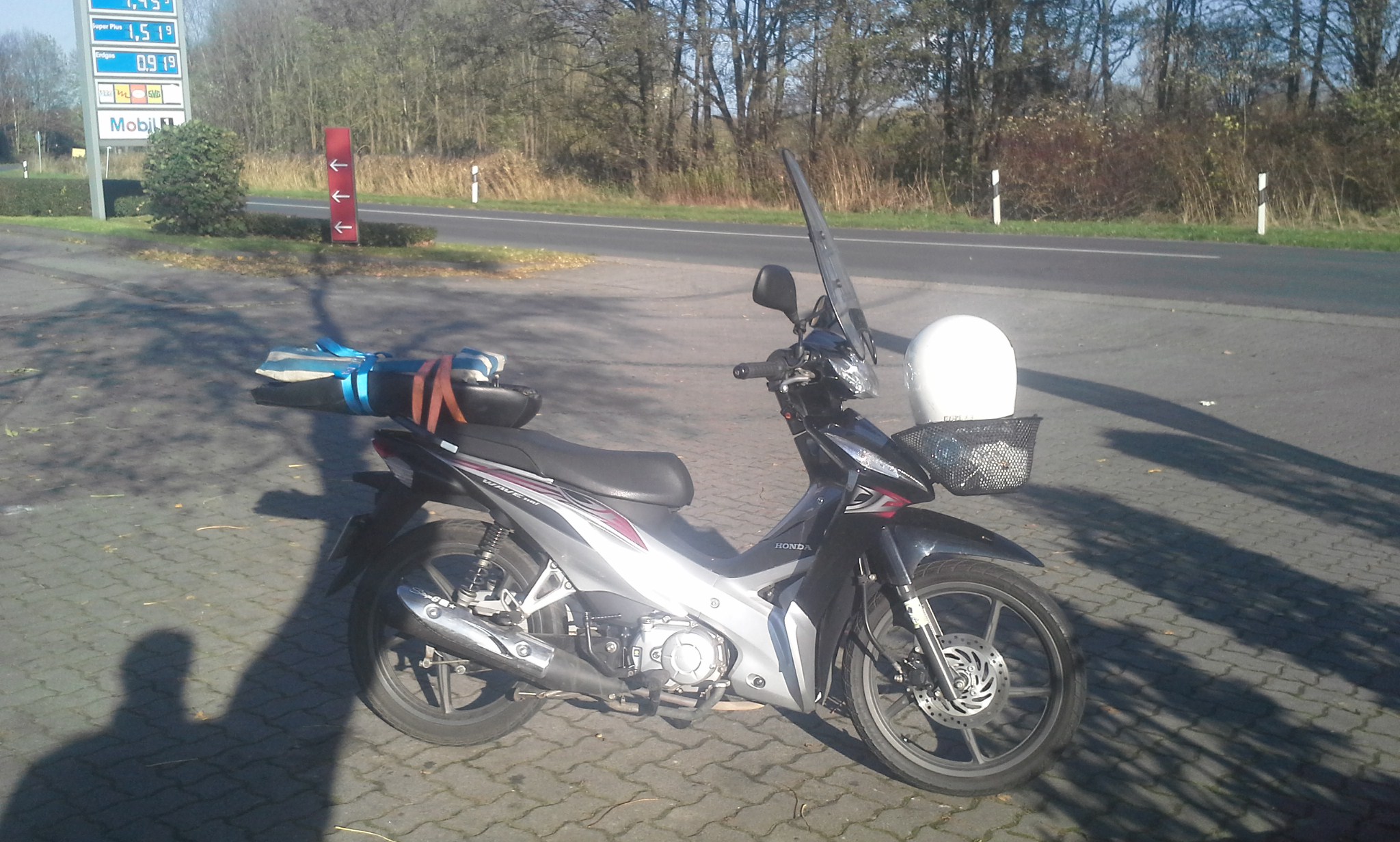 Unterschätzt die Wave mal lieber nicht. Die hat 235ccm Hubraum und verbraucht trotzdem unter 2 Liter! Wahnsinn!