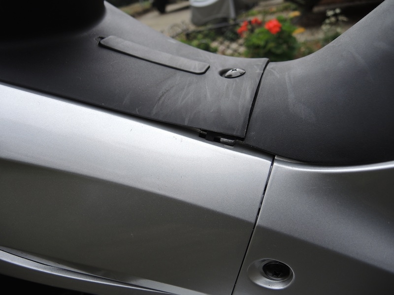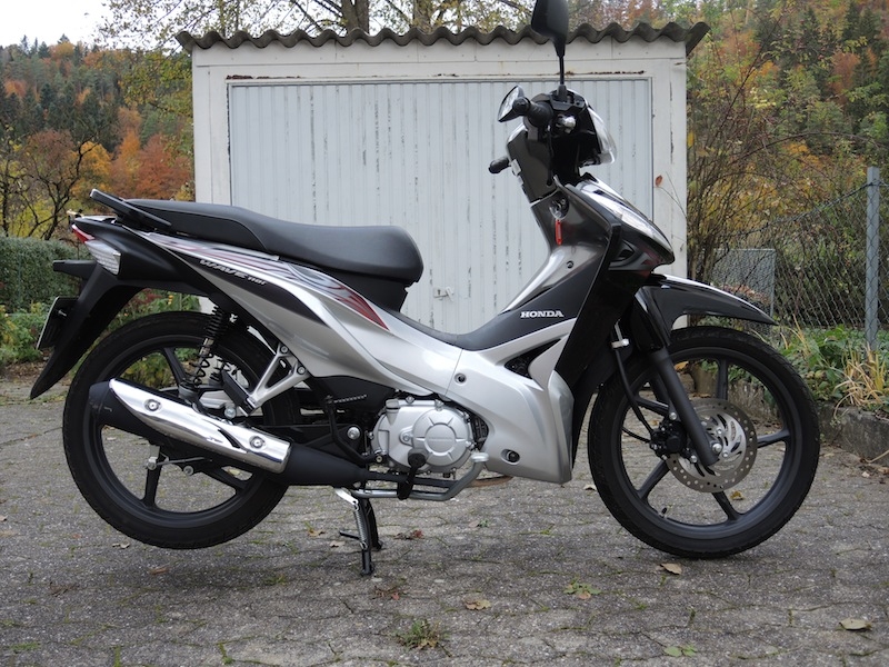 So, jetzt habe ich ja auch zugeschlagen - und mir eher aus Mitleid, als aus Vernunft eine zwei Jahre alte Wave geholt. Der Vorbesitzer hat ihr ein paar Schrammen hinterlassen und mit der Pflege steht es nicht zum allerbesten. Heute habe ich mal die Kette gespannt, nächste Woche kommt der Ölwechsel dran. Was ich nicht befestigen konnte, ist eine gelöste Verkleidung im Durchstieg. Ich dachte, das schraube ich einfach auf und stecke es zusammen.