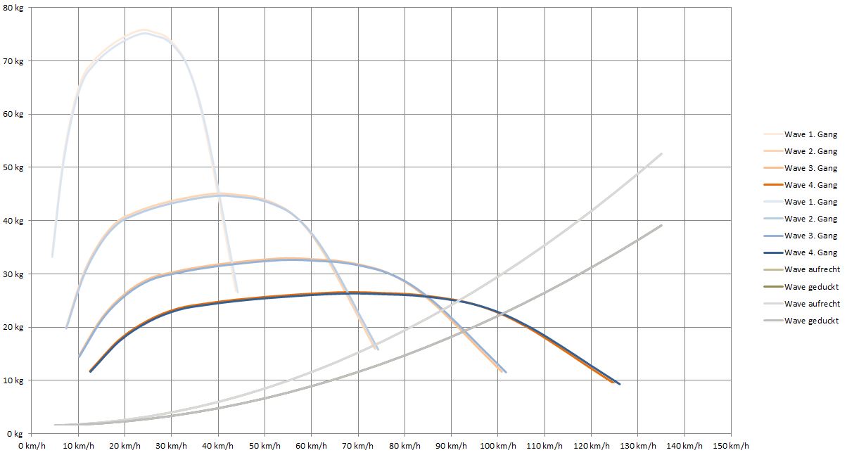 Ich habe heute mit unserer dritten Wave im Bunde (komplett original und unverändert) ein paar KM zurückgelegt, während meine zur Korrektur der Auspuff-Halterung auf der Bühne war. Ich muss sagen, dass durch das 34er Kettenrad schon etwas Beschleunigung verloren geht. Allerdings ist mir auch direkt aufgefallen, wie hackelig und kurz die Gänge mit dem originalen 37er Kettenrad zu fahren sind. Mit dem 1. Gang kann man nur äußerst schwerlich abbiegen. Gefällt mir ebenfalls nicht!