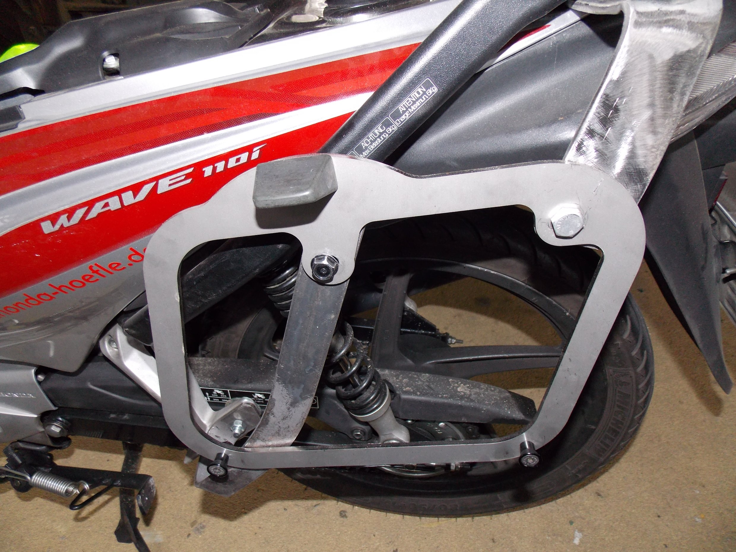 Nun Teilefertigung. Abgewinkelter und gekröpfter Flachstahl (4 mm) für die Befestigung an der Gepäckbrücke. (Achtung wenn dort auch der Topcaseträger befestigt wird, anschließend 5 mm längere Schrauben verwenden)