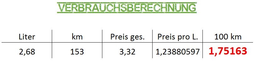 und Verbrauch auf 150km auch gleich dabei Edit: