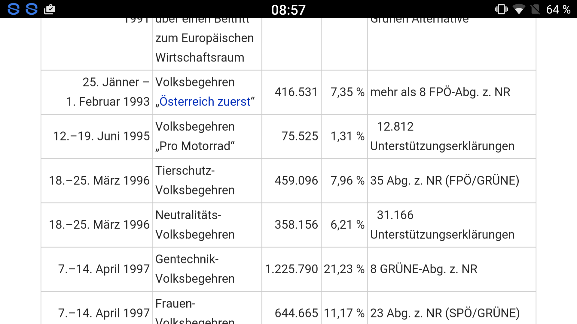 das Motorradvolksbegehrenn ist als einziges an der Hürde von 150.000? Stimmen gescheitert. Man wollte Privilegien, die aber später sowieso Gesetz wurden.