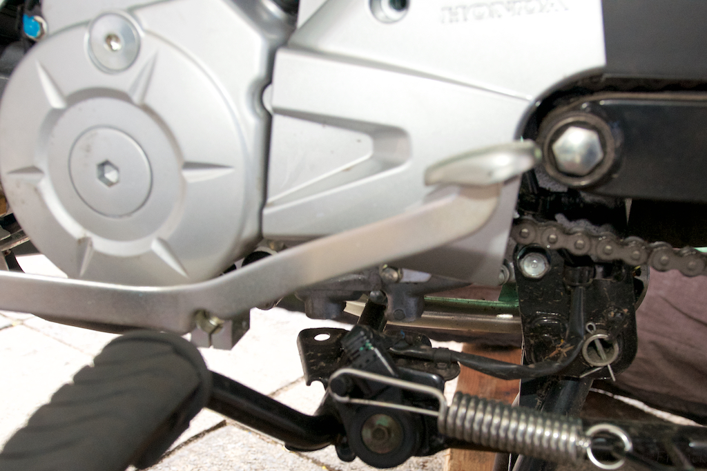 Dann raus und nachgeschaut, damit ich da irgendwie vernünftig hinkam, löste ich die Fußrasten