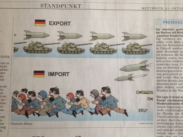 Einziges Manko: es wird nur die Deutsche Flagge gezeigt. Alsob Frankreich, Grossbritannien, Russland und die USA nicht ordentlichst an der Export-Seite mitmischen. Beim Import allerdings stimmt es, Ihr Deutschen kriegt die Hauptlast auf den Kopf und dann kommt auch noch so ein superhochrangiges Nichtswissermaul aus Bruessel daher und erklaert Euch, dass Ihr die EU-Aussengrenzen besser abschotten muesstets.