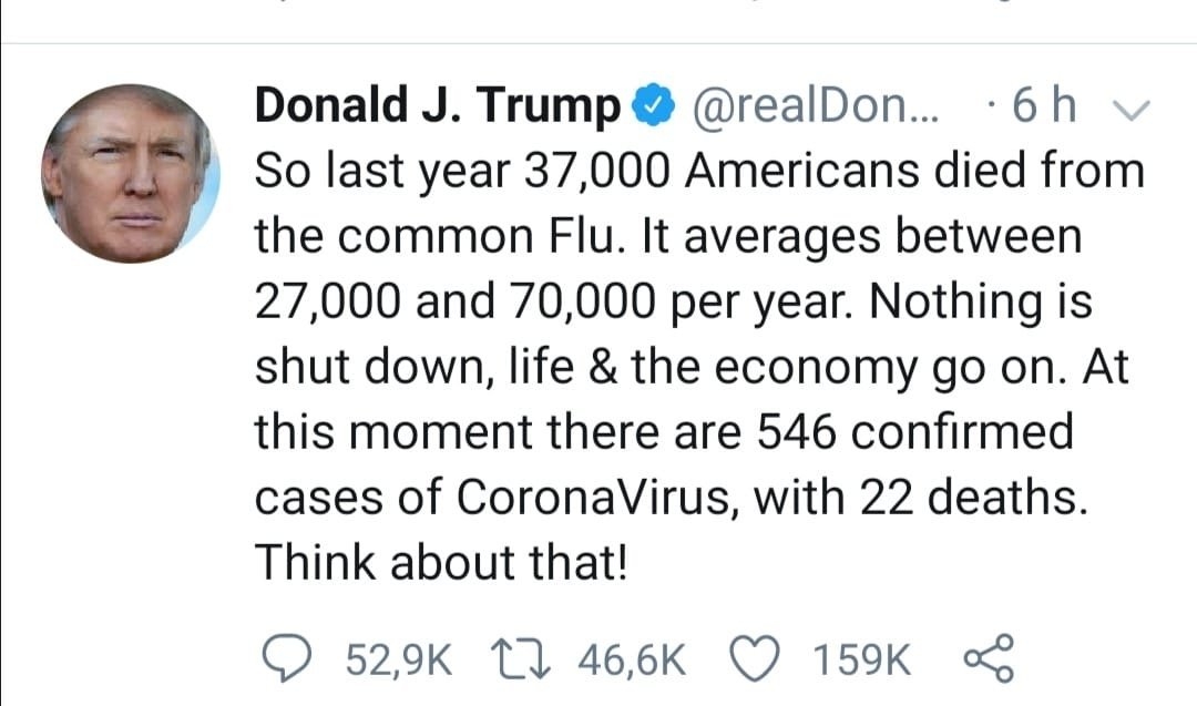 2 Tote Corona, die eigentlich an anderen Krankheiten starben, so wird es nämlich zumeist bei Influenza erfasst, die Leute sterben an Lungenentzündung, Herzversagen, Diabetes etc. aber nicht an Influenza und dennoch bisher diese Saison 200 Influenza Tote vs. 2 Coronatote also ist Influenza 100x gefährlicher, mich täte mal interessieren ob es aktuell überhaupt noch Todesfälle durch Influenza gibt oder ob die gleich auf Corona geschrieben werden.
