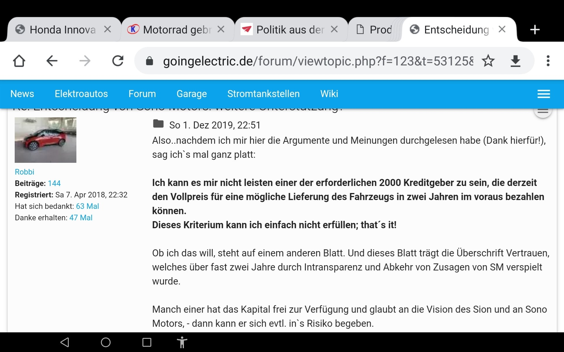 Sono Motors GmbH hat mir soeben einen Newsletter zugesandt: Man brauche binnen 2 Wo . 2.000 Anzahlungen für den vollen Kaufpreis. Nee, es sind 4 Wochen!