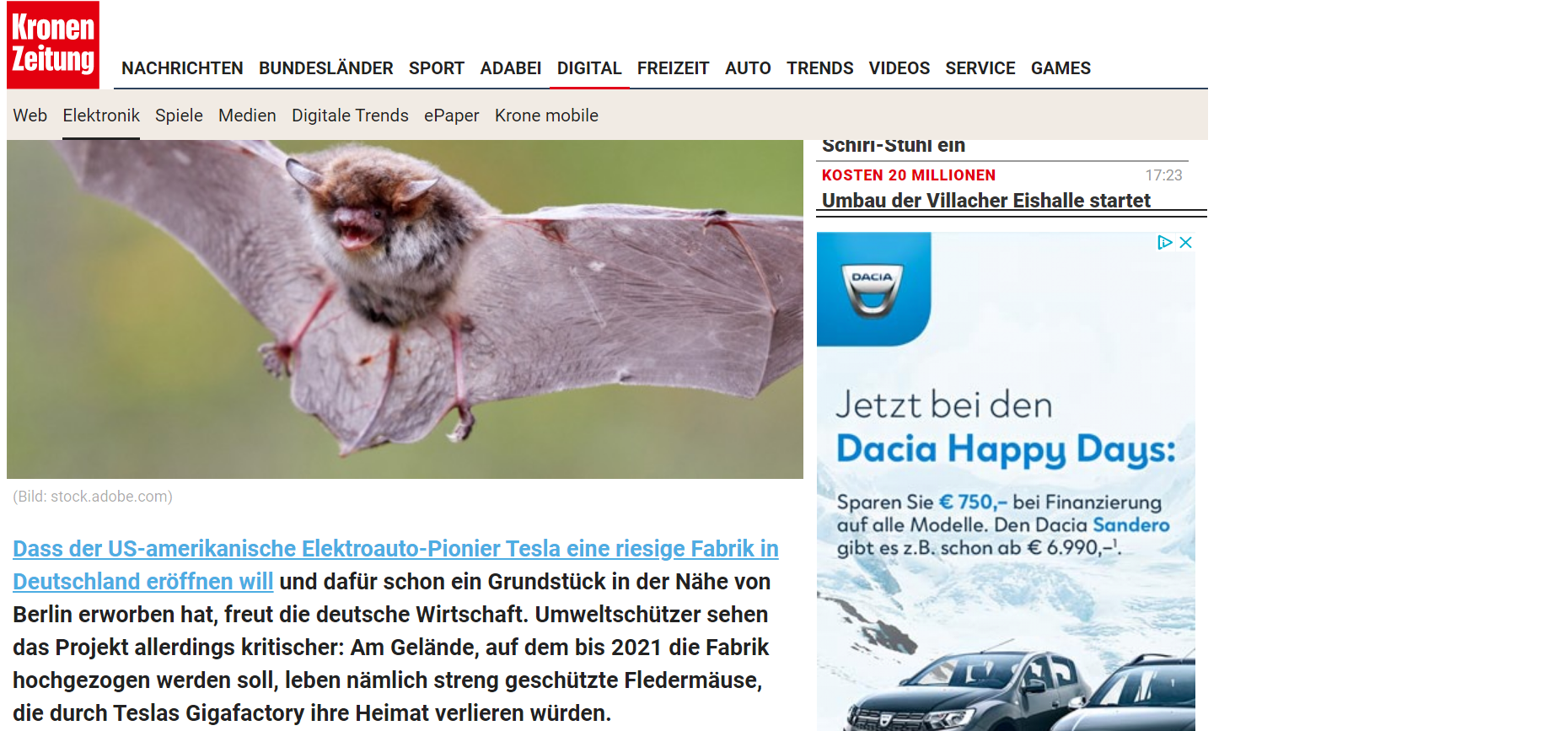 mäuse gefunden. Grad dort, wo Tesla bauen will.