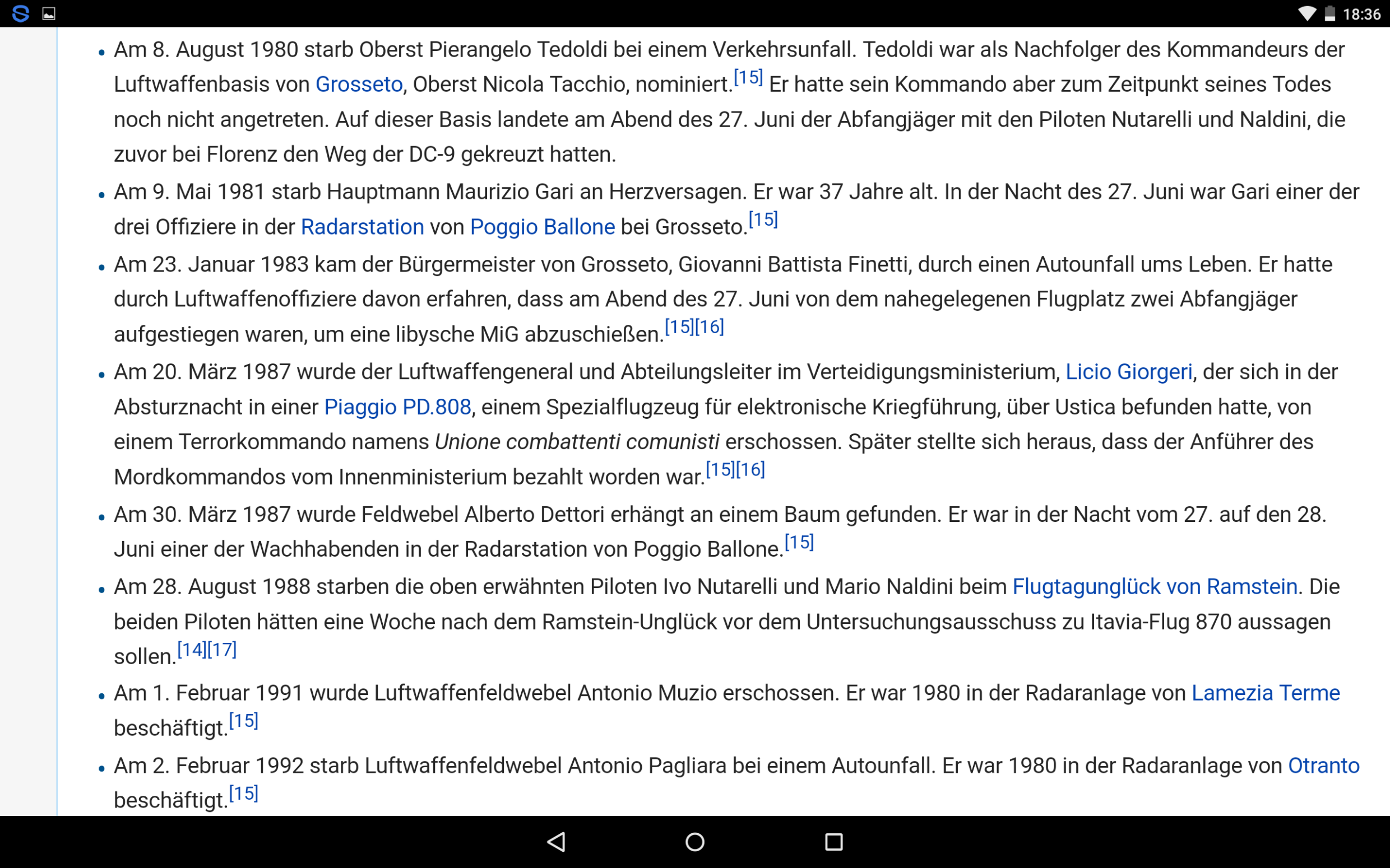 Wer mag, schaue sich einen Fall von "Staatsräson" an. Itavia Flug 870, Absturz ins Meer.