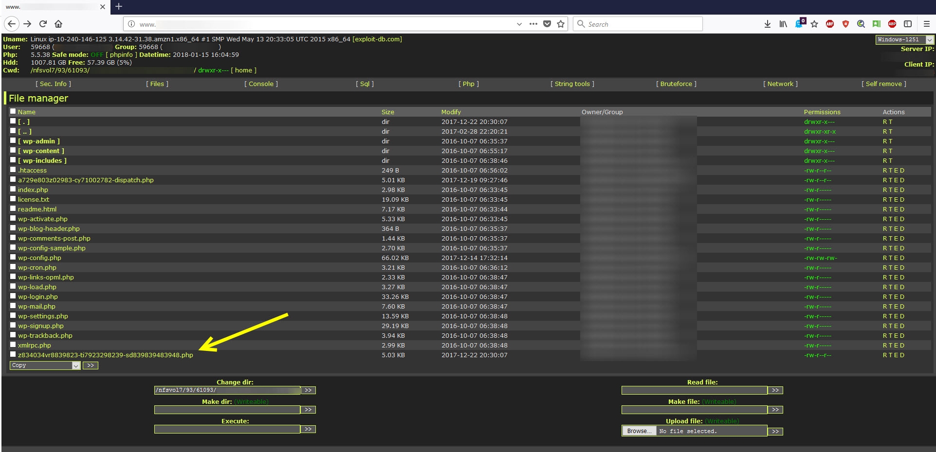 Weil ich ja Zeit habe und das mit meinem Beruf, den ich sehr vermissen, zusammenhängt bin ich der Sache mal nachgegangen. Ich habe also mal die entsprechende Webadresse aufgerufen und fand mich dann auf einen Webserver wieder. Auf diesem Webserver wird dann das PHP File (Mit dem roten/gelben Pfeil markiert) wieder. Wer jetzt nicht weiss was die Endung PHP bedeutet, die Erklärung: