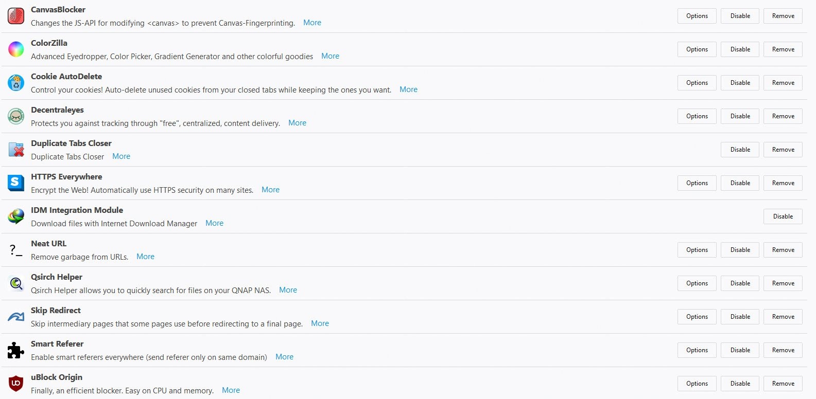 Den FF habe ich, aufgrund des verlinkten Artikels der mich überzogen hat, reorganisiert. So sieht nun meine aktuelle Add-On List in FF aus: