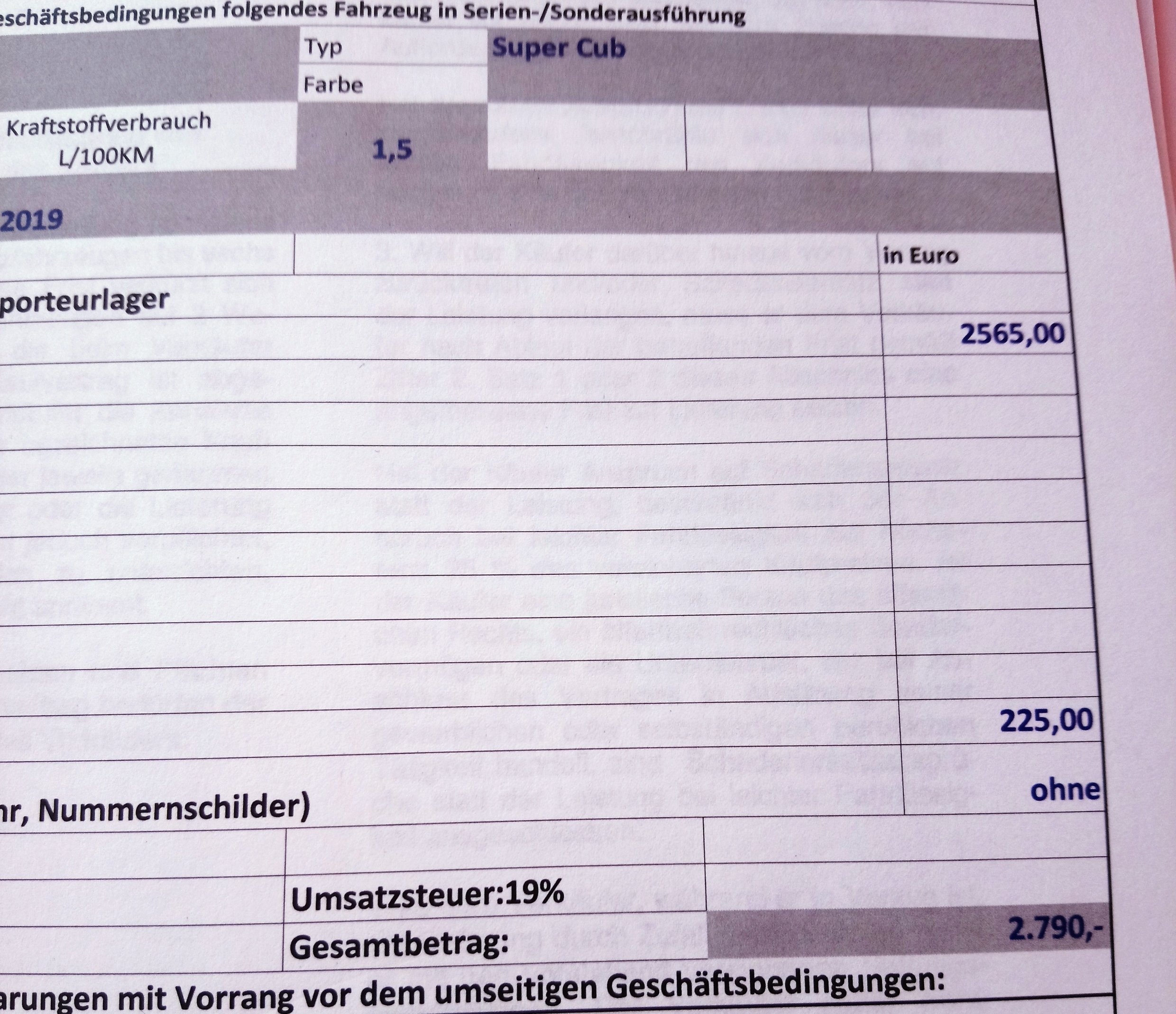 Ich meine auch, so zwei oder 3 Honda C125A SuperCubs sollte man haben, und dazu vielleicht noch eine Reservemaschine.