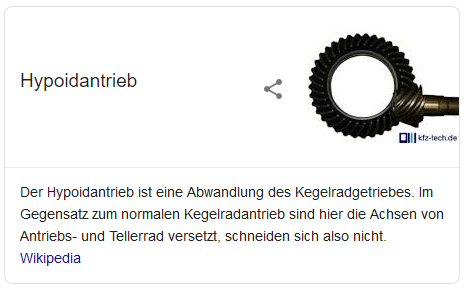 Ist das Merkmal einer Hypoid-Verzahnung nicht auch, dass sich die Wellenachsen nicht schneiden, ein Zahnrad einer Schnecke ähnelt ? Hier tun sie's aber.