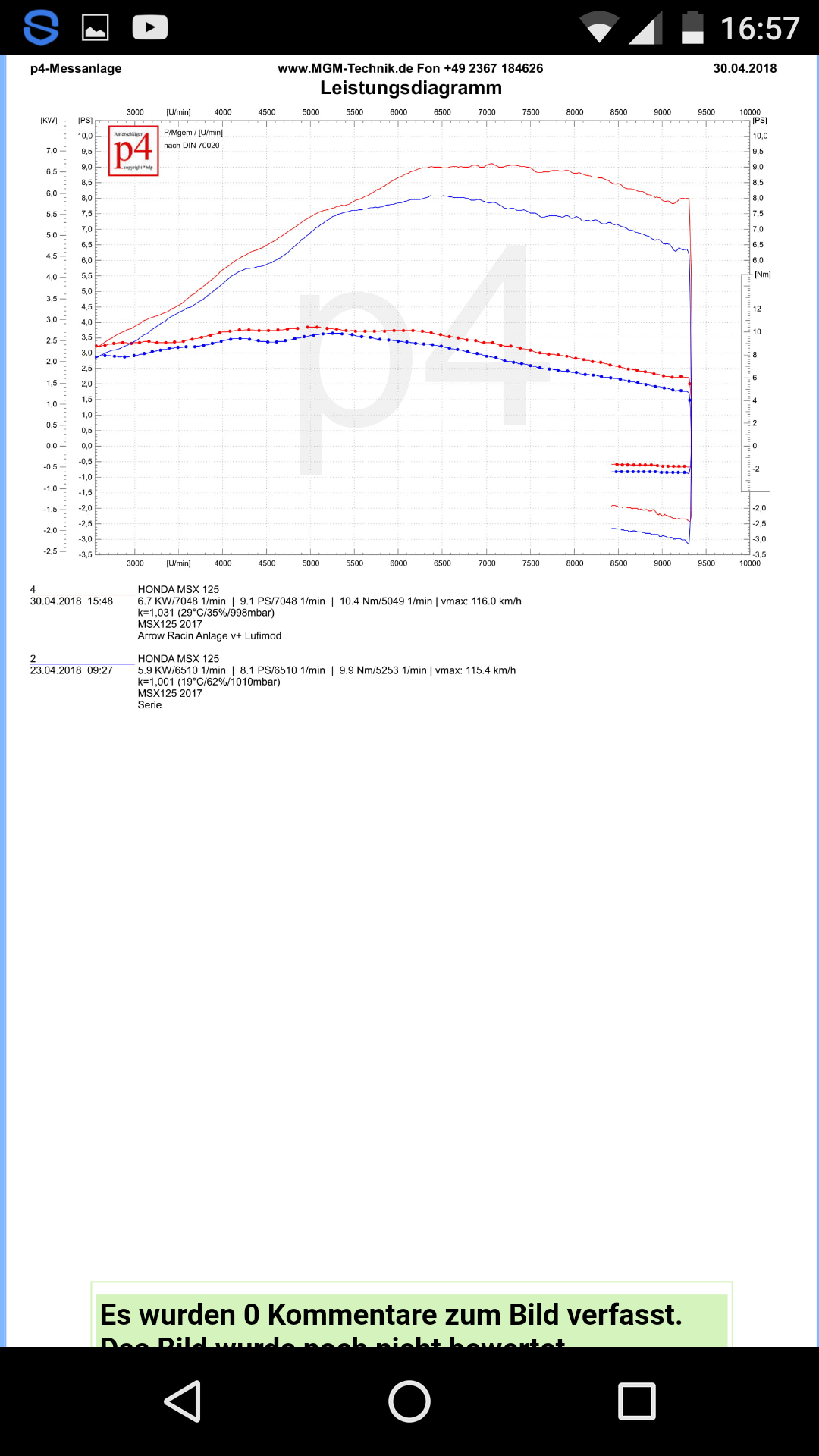 Ein guter Auspuff mach etwa 0,4ps bei gleichen Band.