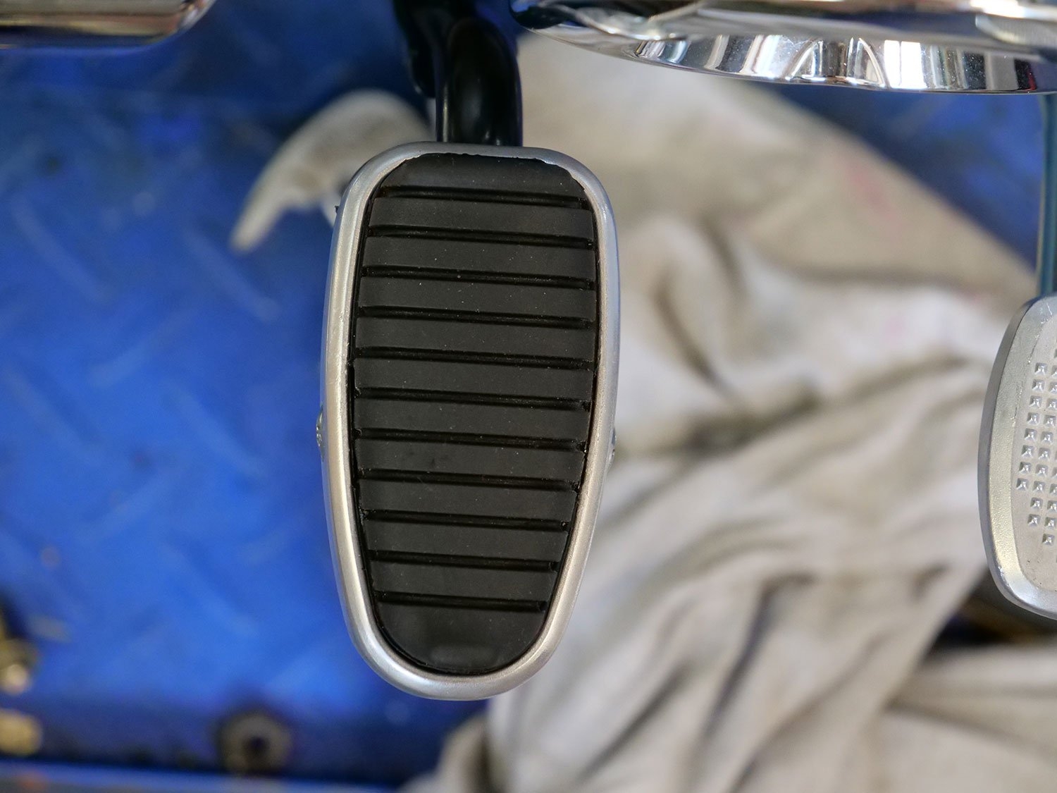 Je nach persönlichem Gusto kann man auf die Fußrastengummis, die zugehörigen Alu-Rahmen, die Befestigungsbleche dazu, die vier Kreuzschlitzschrauben sowie den Anschlag-Gummi Bremspedal verzichten und von der bisherigen Fußrastenanlage weiter verwenden.