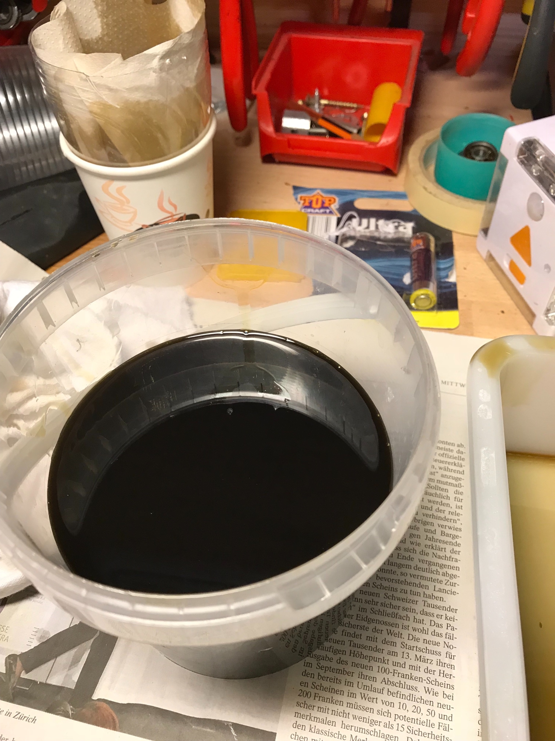 Keine besonderen Vorkommnisse. Mit Super magnet nichts gefunden, Altöl durch Tuch gefiltert, ohne Befund.