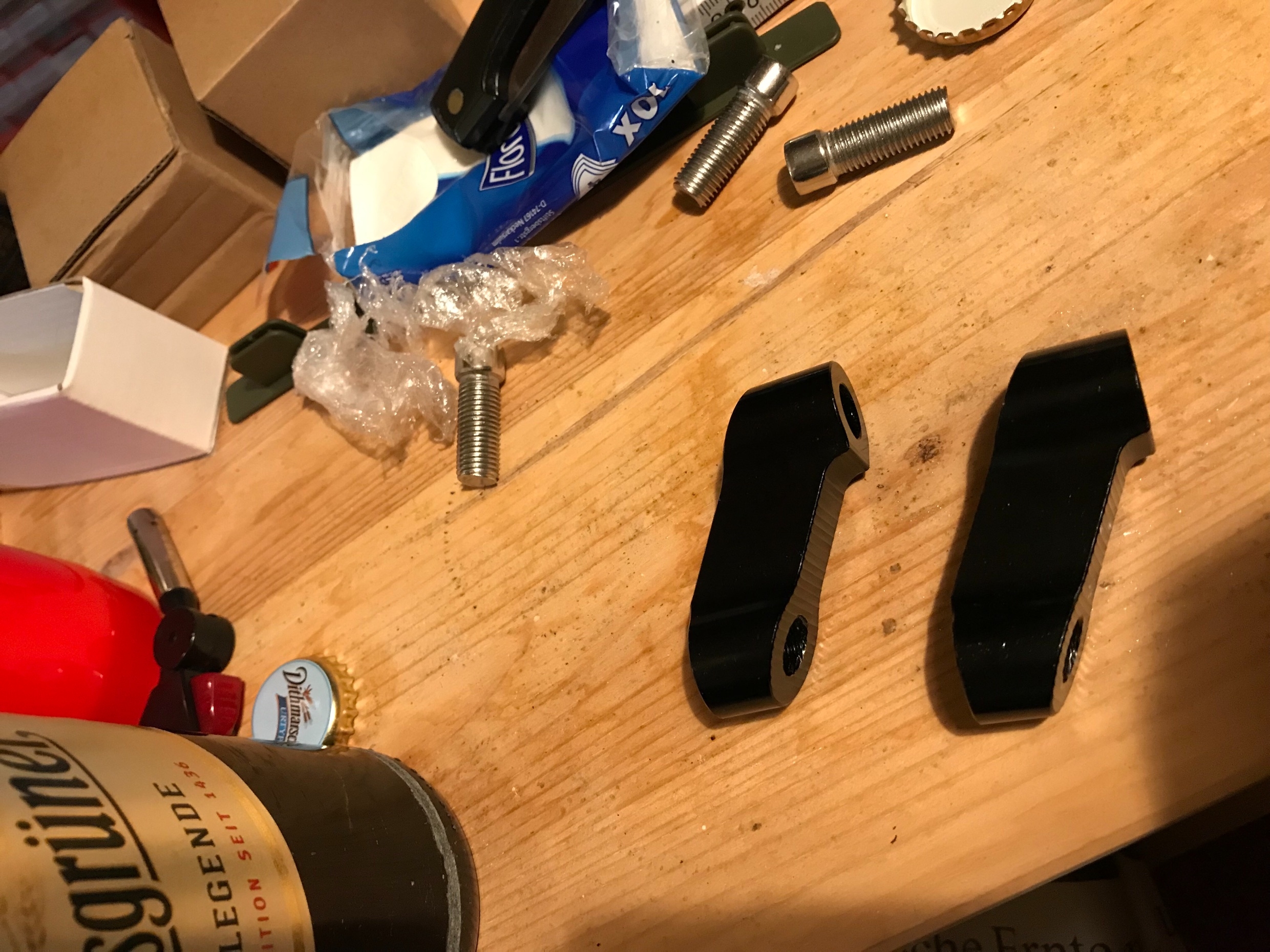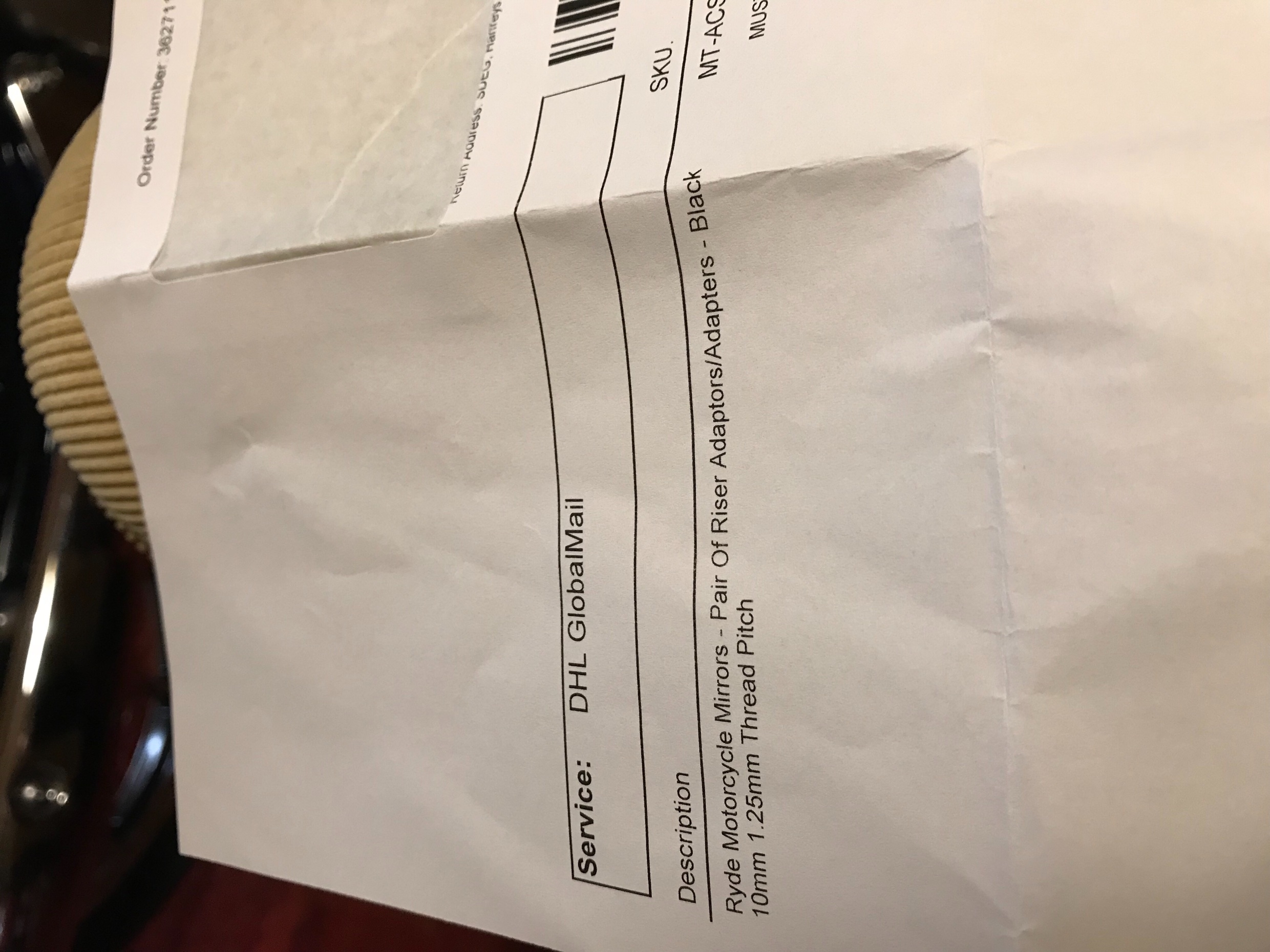 Die Rückspiegelverbreiterung ist gekommen, wird heute montiert, trotz 6 möglicher Falschkonstellationen mit links und Rechtsgewinde