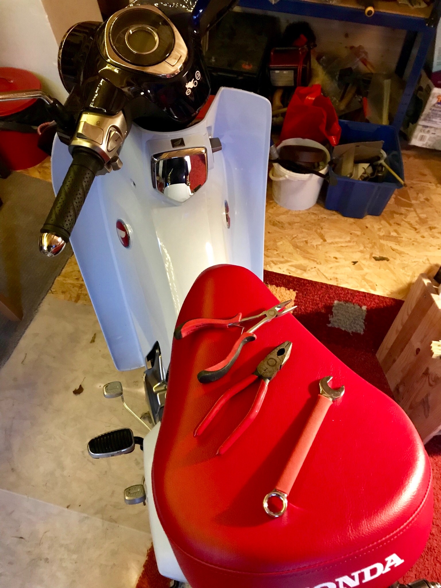 Nächste Woche bekommt der Monkey Shop eine Super Cub zur Verfügung, und dann werden die Zubehörteile ausprobiert.