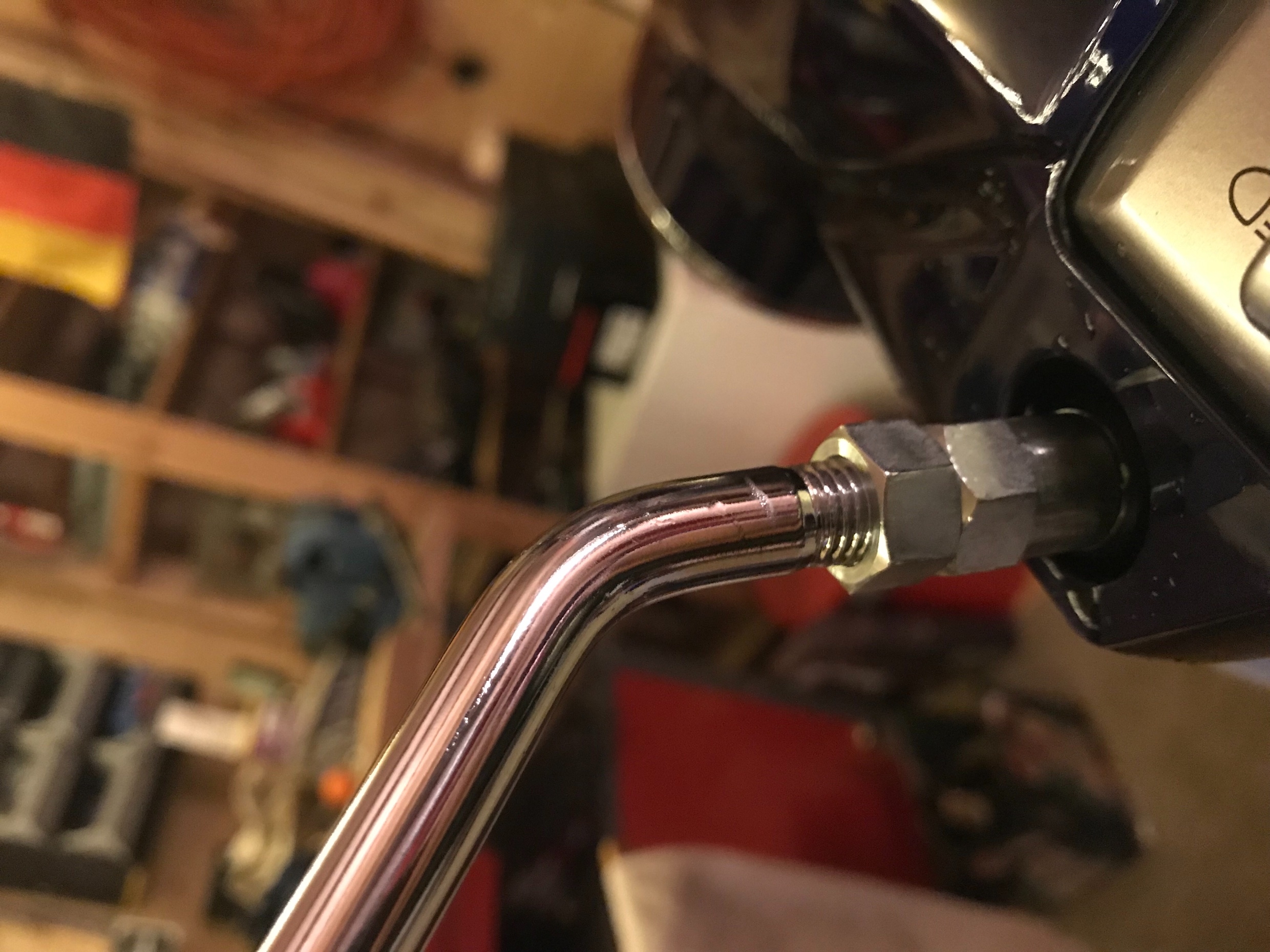 Die beiden Adapter aus dem Internet sollten einer Rechtsgewinde haben, der andere Linksgewinde. Also dachte ich, einer von den beiden wird wenigstens für einen Spiegel passen. Also einer von beiden hat wohl richtige Richtung, aber ist zu fein oder zu grob oder zu steil. Schlüsselschraube mit richtigen Kaliber lässt sich gut reindrehen, Hondaspiegel jedoch nicht.