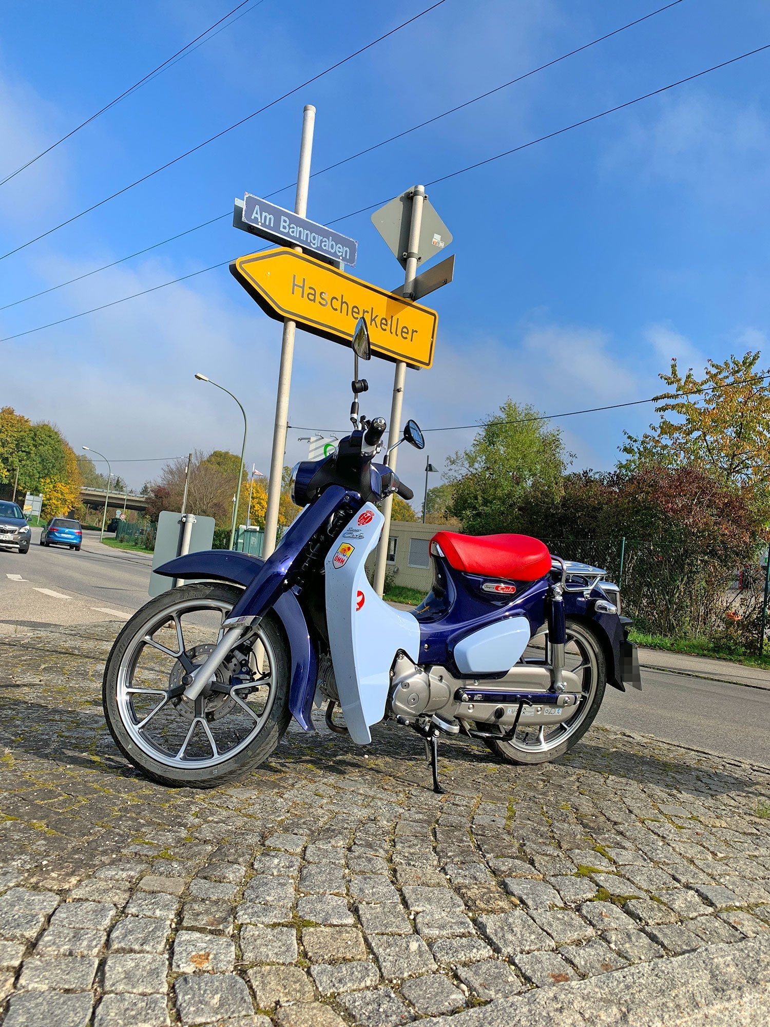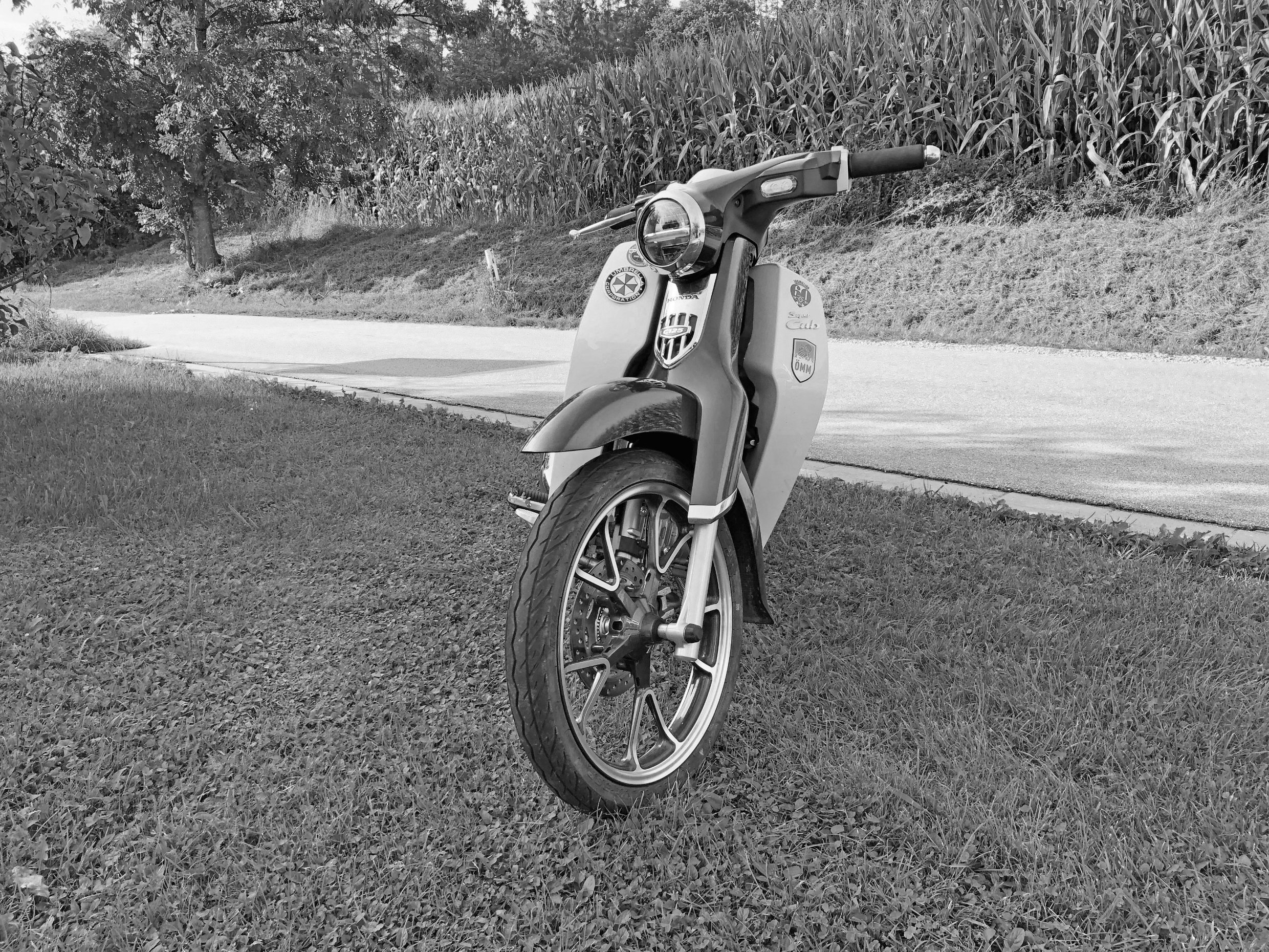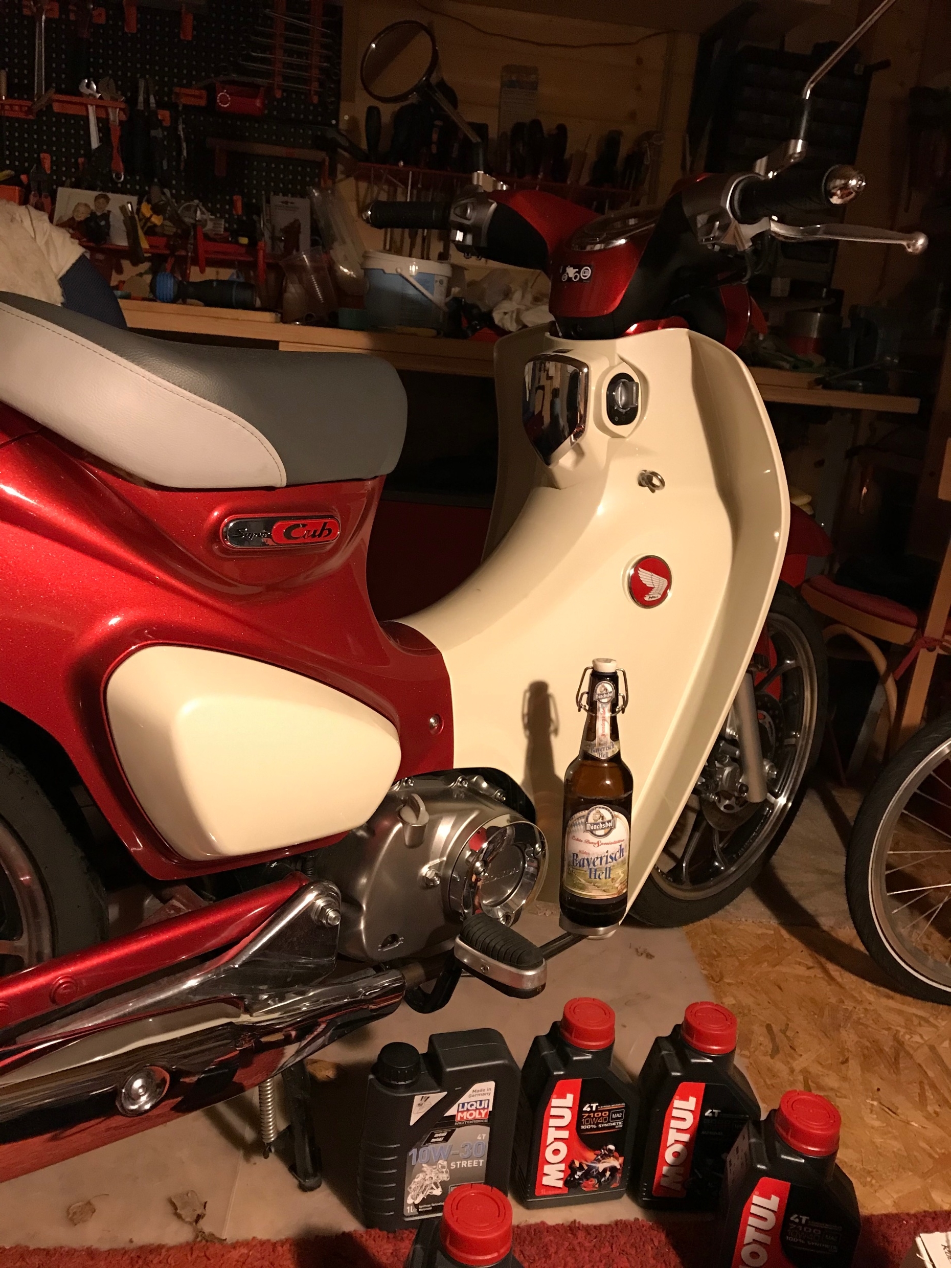 Einziger Trost, die Eisdielen- Kurzstrecken SuperCub, die auch als Bierhalter fungiert, und verwöhnt wird, zum Beispiel heute mit einem eigenen Kellerharrer Thermometer.