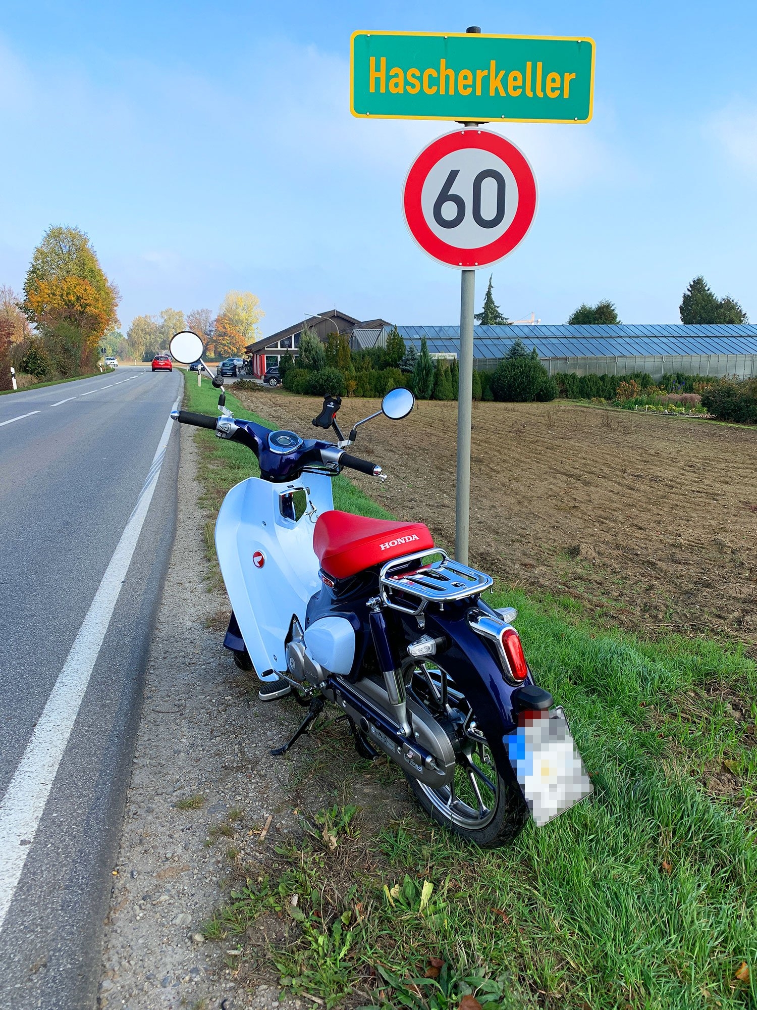 Herbstliche Ausfahrt für die neue lose Serie "Cubs vor dödeligen Ortsschildern"