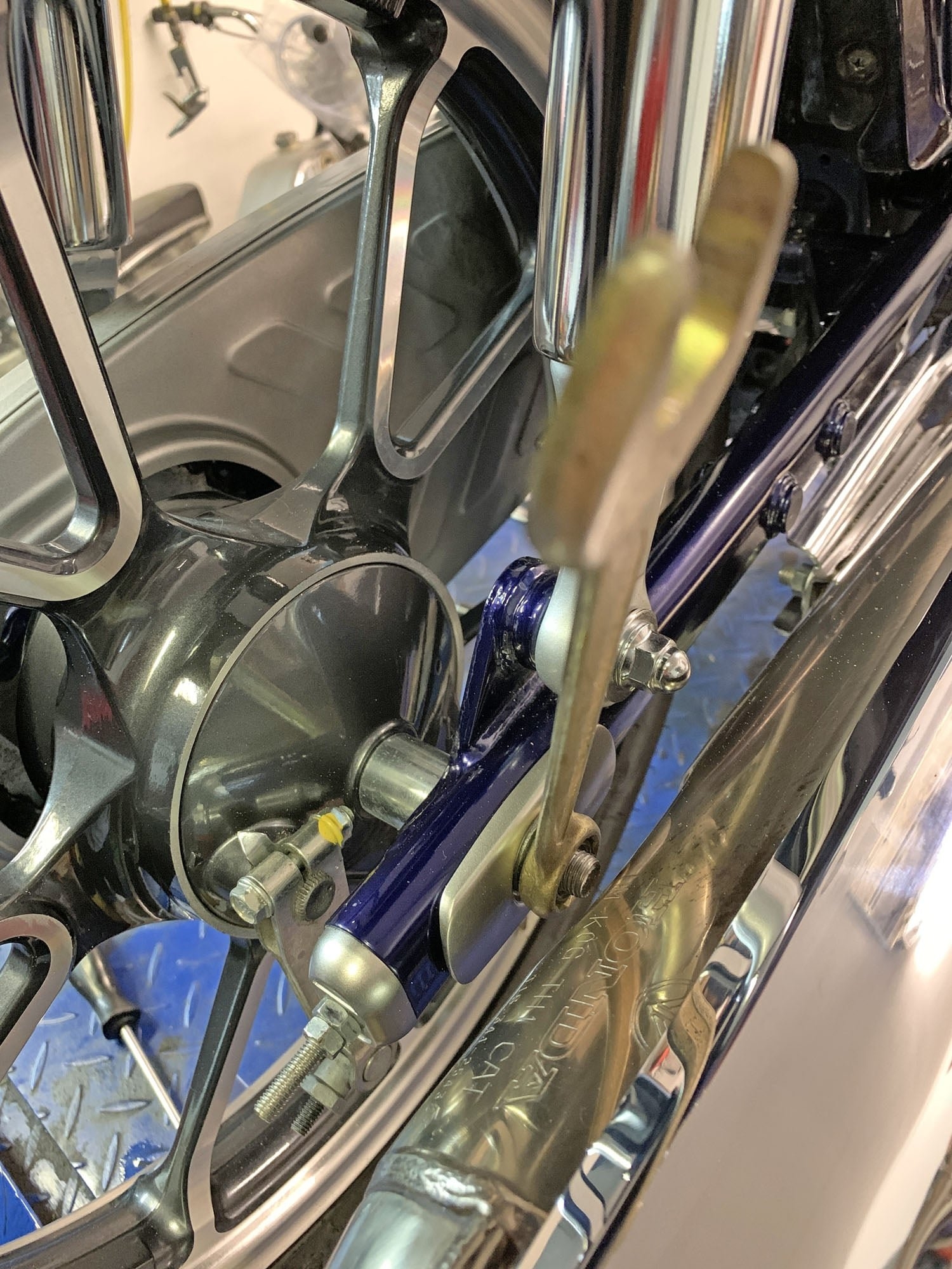 Beim heutigen Werkstattabend, der in erster Linie show & shine* diente, habe ich mich beim kontrollieren der Kettenspannung daran erinnert, dass irgendwer hier im Forum mal behauptet hat, da würde kein Ringschlüssel auf die Achsmutter passen, ohne den Auspuff zu demontieren. Weiß nicht mehr, wer das war, aber es ist halt eh nicht richtig. Habe einen Fotobeweis gefertigt.