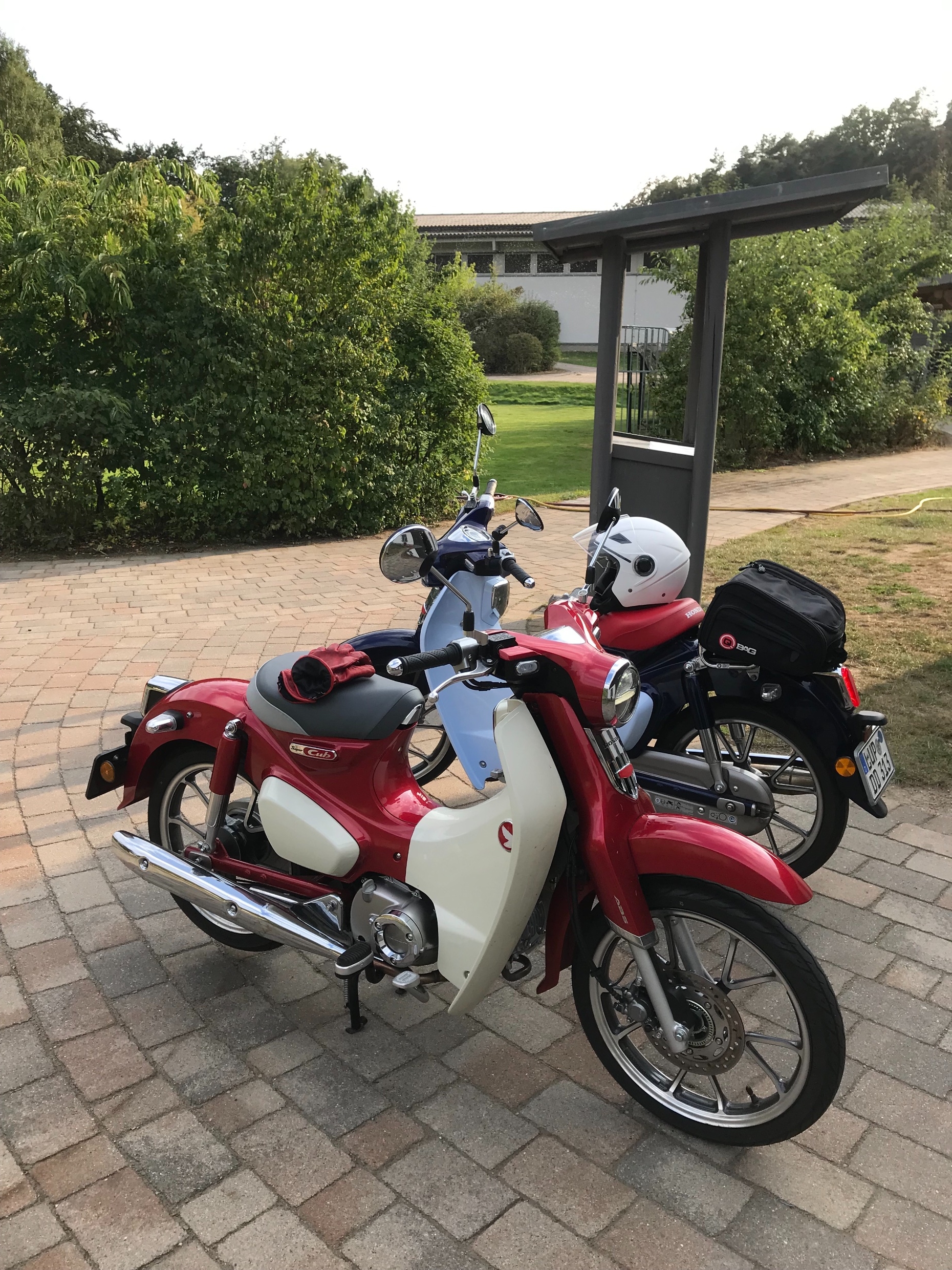 Bin aber beruhigt das dieser Spass, an Eisdiele vorfahren, keine SuperCub Macke ist, sondern auch von den echten richtigen Motorrad Leuten gepflegt wird.