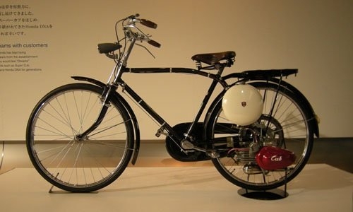 PS: Ist eine Honda CUB F , ab 1952, vorher gabs die CUB A mit Riemenantrieb, danach die Dream als erstes richtiges Motorrrad, hab ich auch gerade erst zusammengegoogelt.