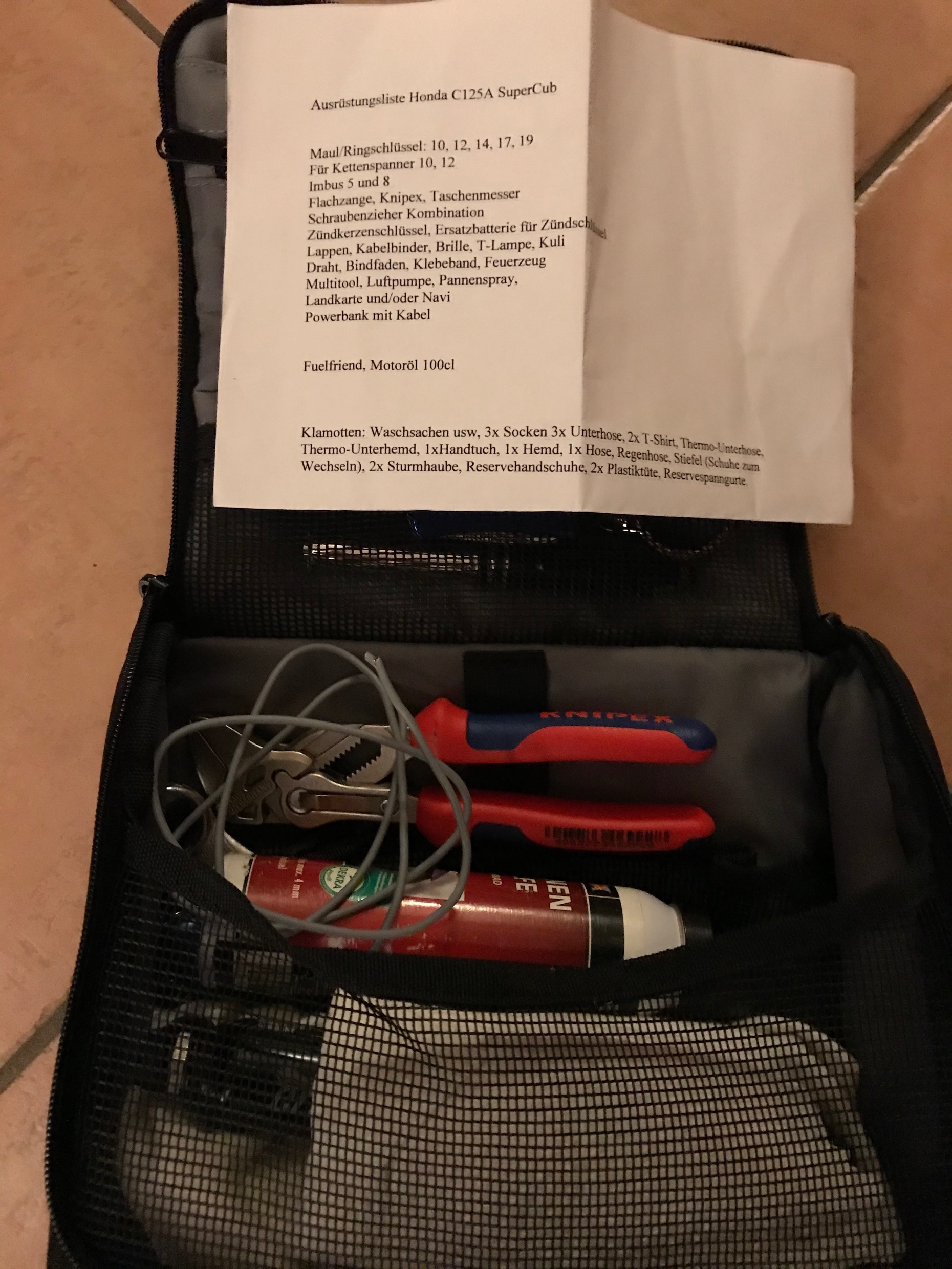 Für eine nun zu planende 2 oder 3 Tagestour habe ich eine Liste, ich denke mal das muss reichen.