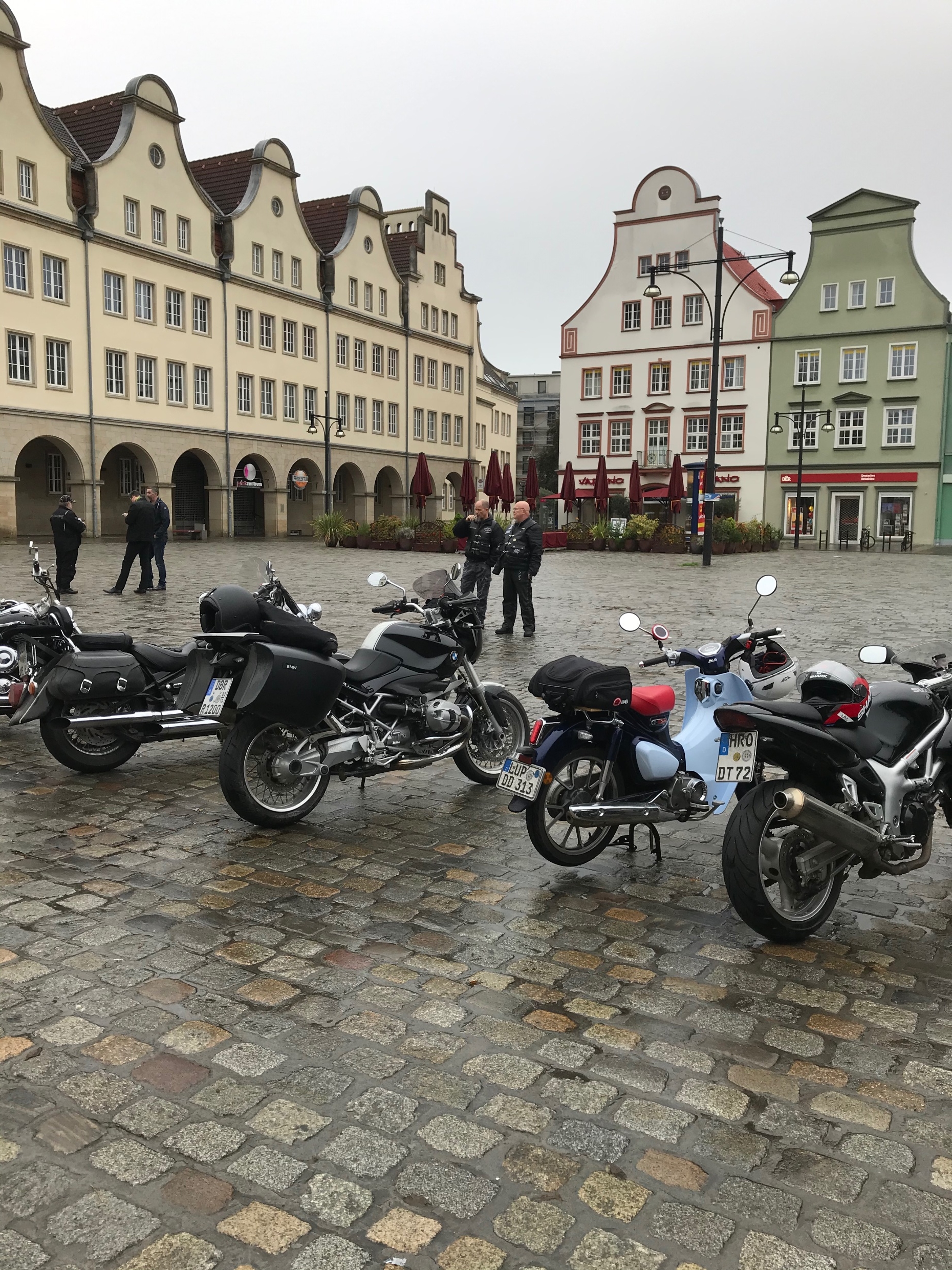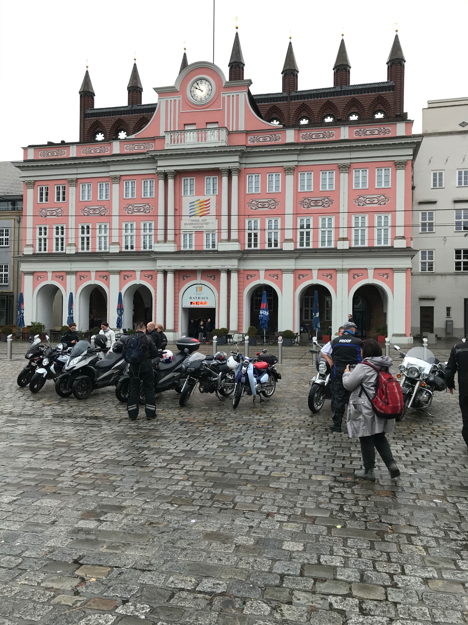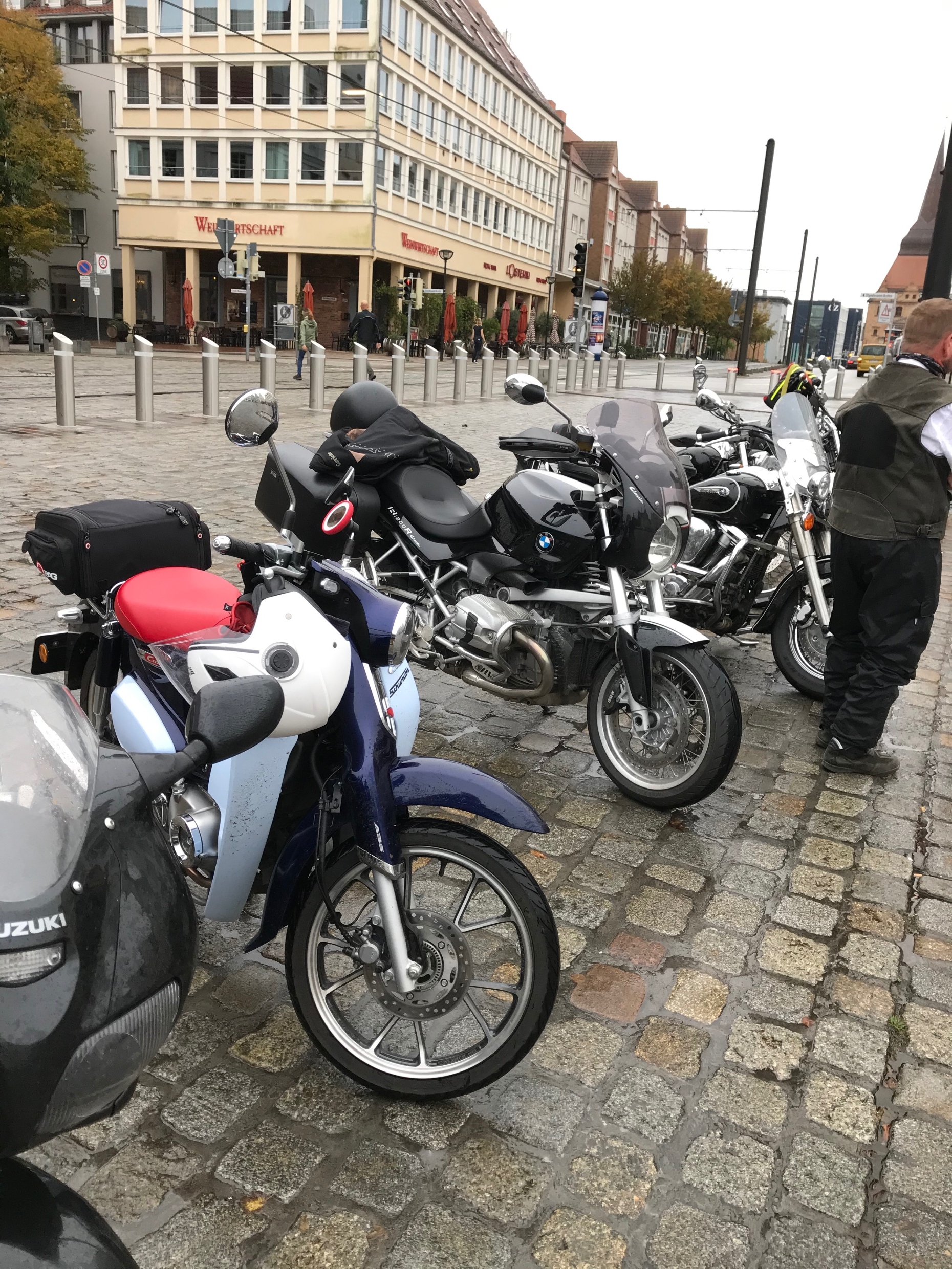 Aber die einzige SuperCub natürlich. Treffpunkt war Rostock Neuer Markt vorm Rathaus.
