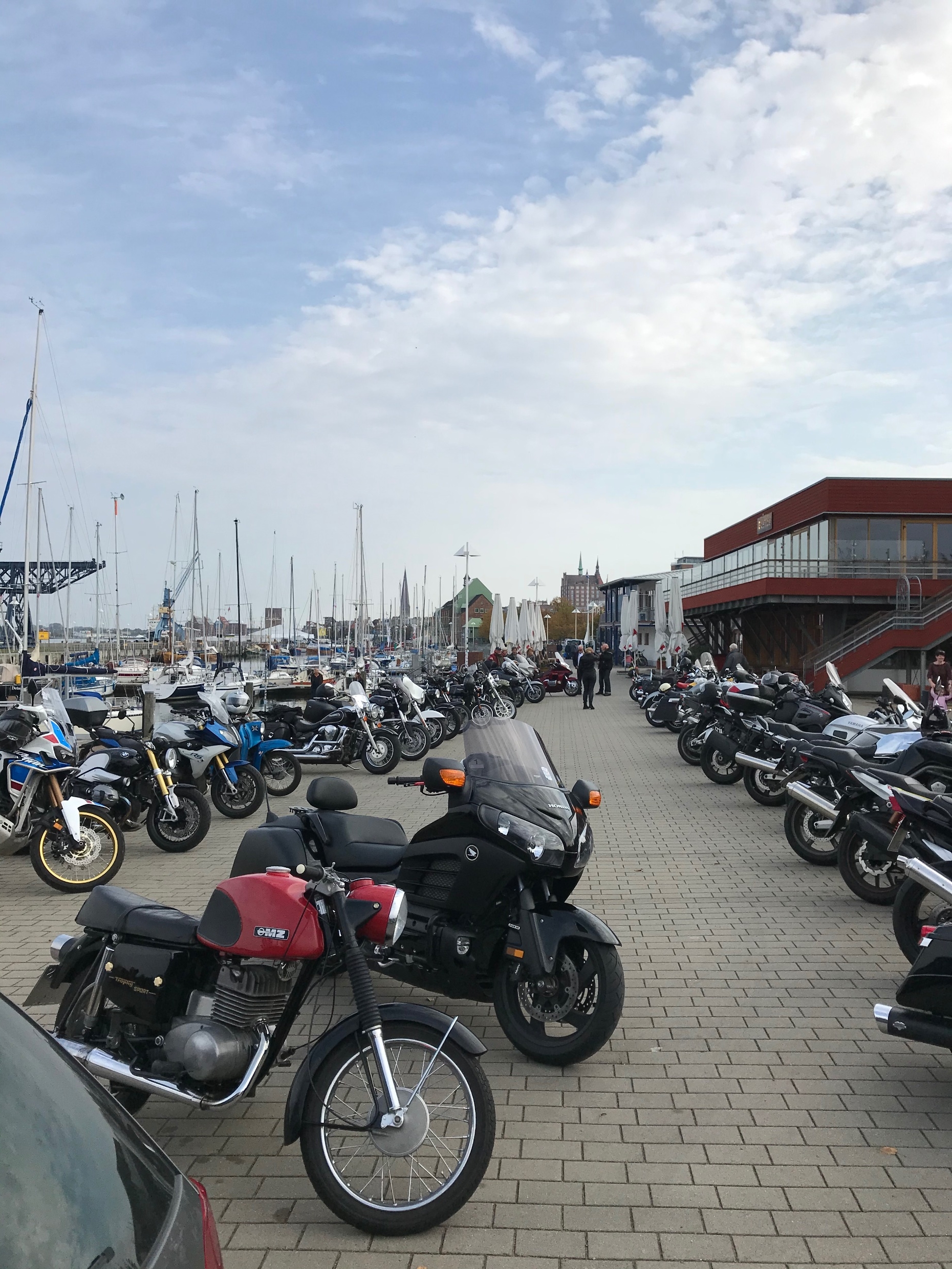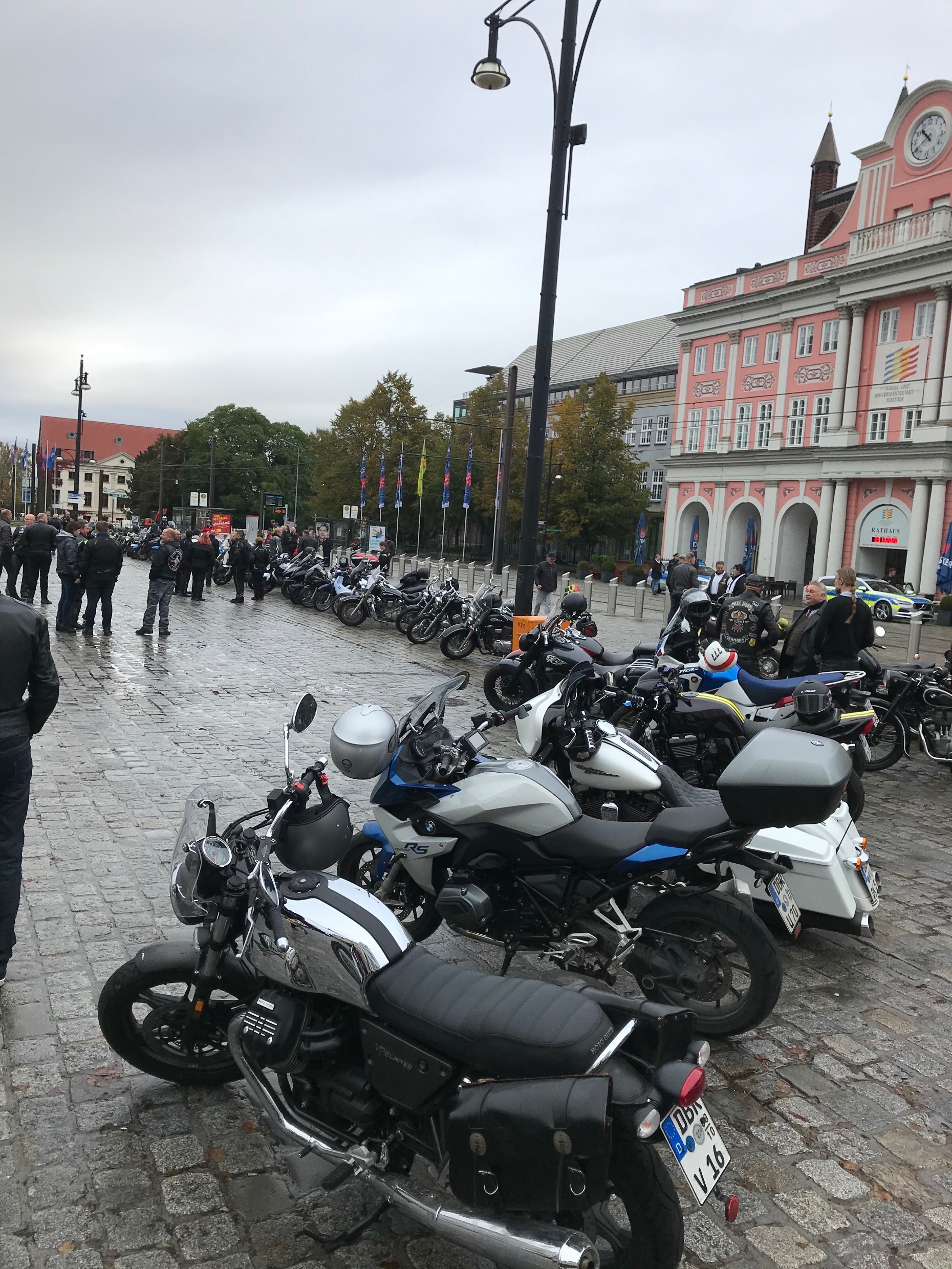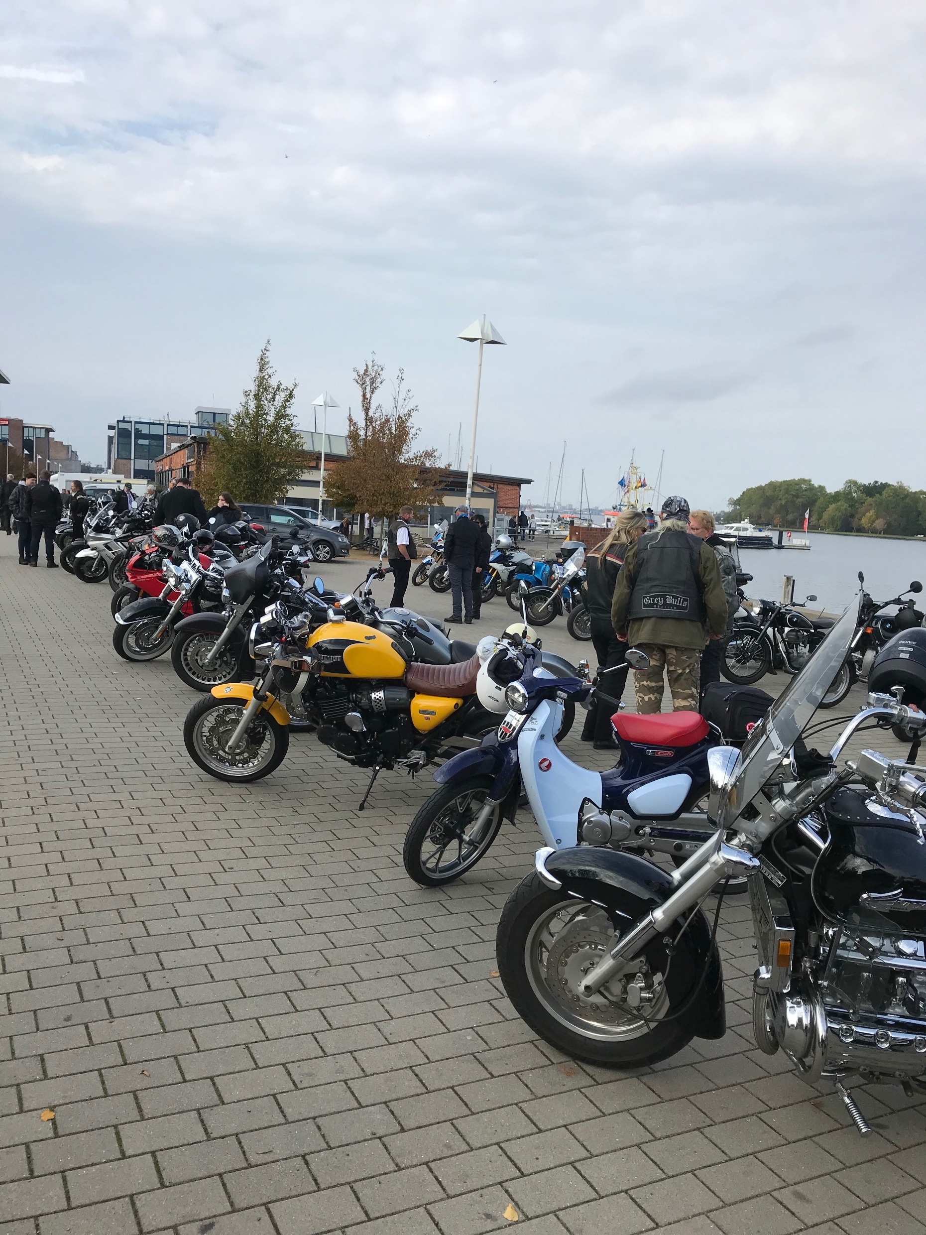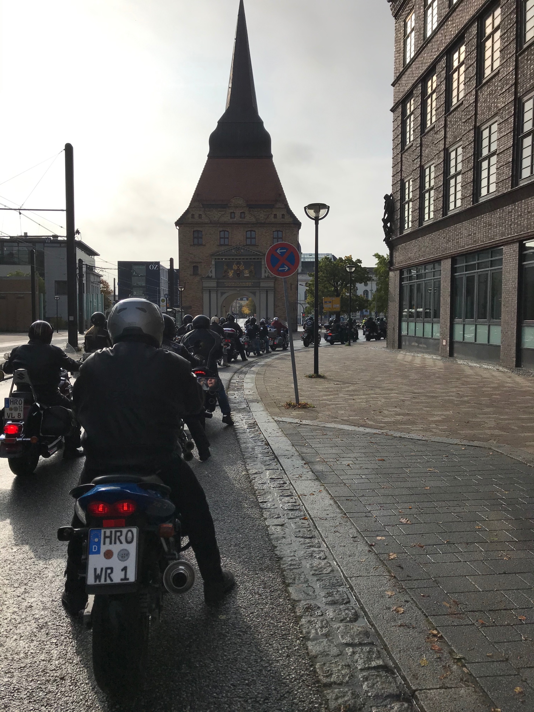 Heute auch der Gentlemans Ride in Rostock. Ca 90 km hin, 40 Km in der Stadt bis Warnemünde, inkl Mauttunnel und Polizeieskorte, alle Kreuzungen und Ampeln abgesperrt usw., war sehr nett. Eine Mischung aus wenigen „Gentlemen“ und ein großer Haufen Rocker mit Kutte, sagen wir mal mittelalt, aber alle sehr umgänglich.