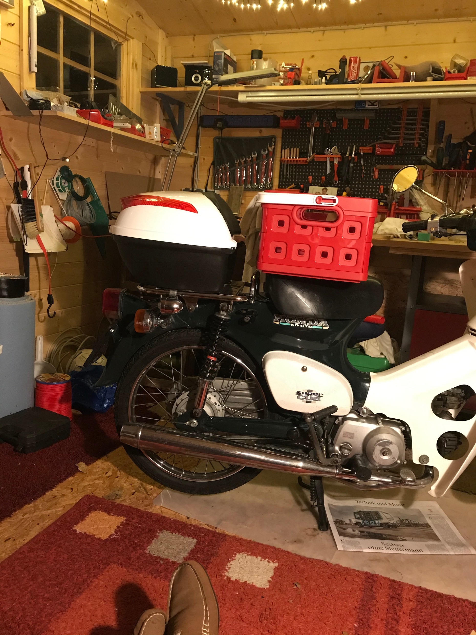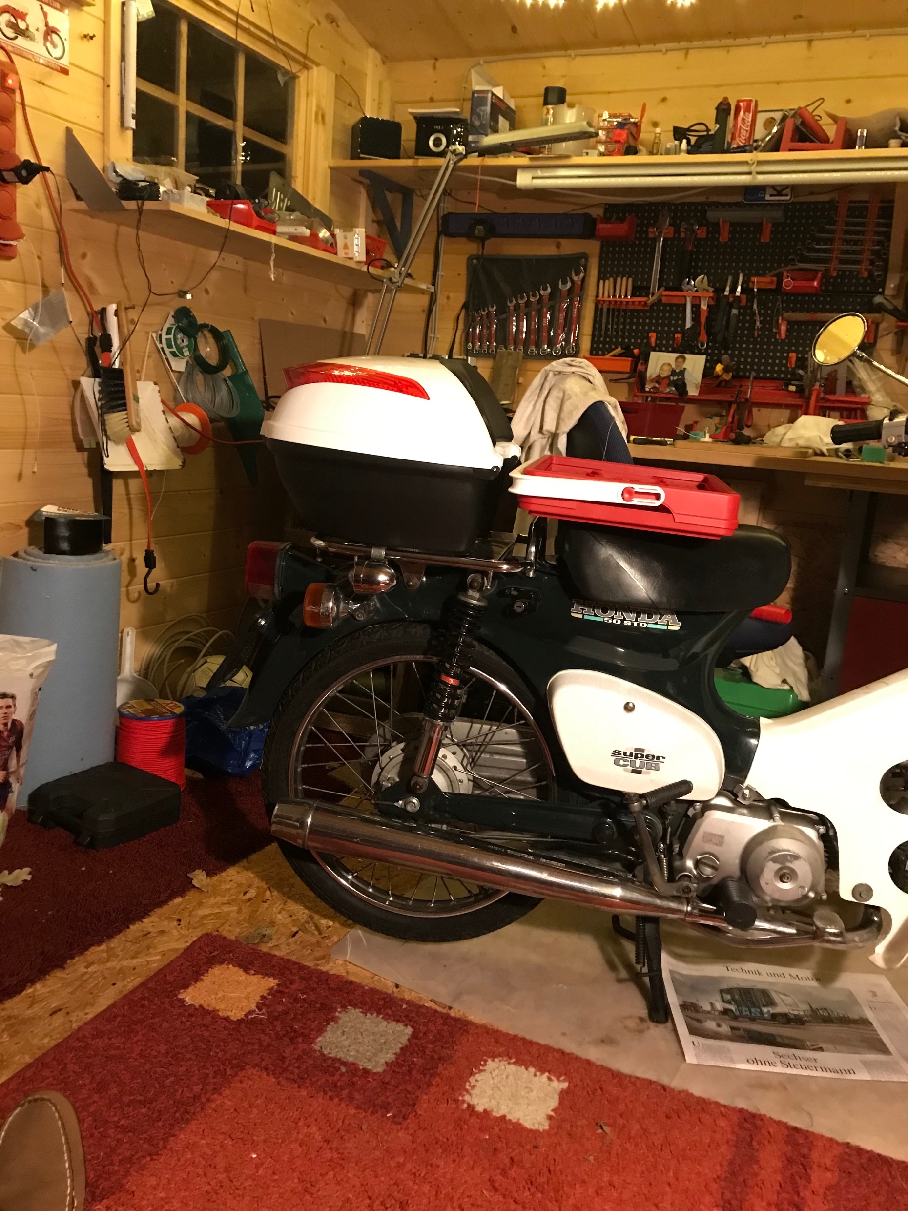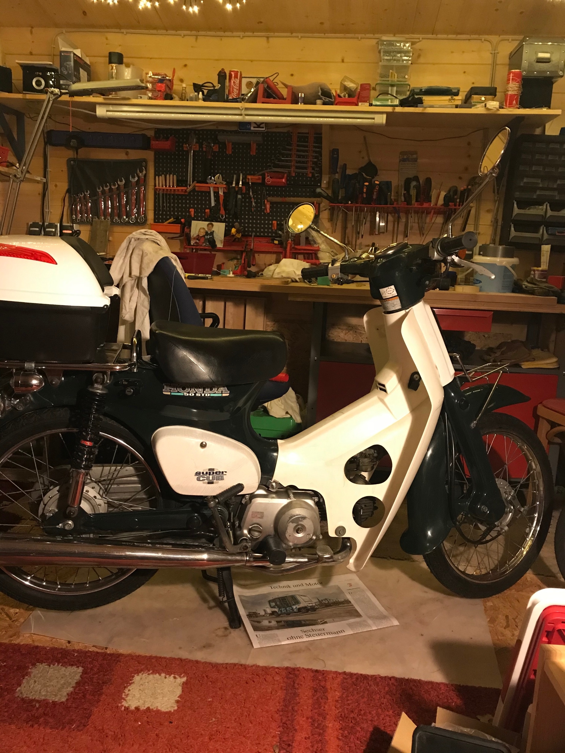 Kai, der FAHRER muss dafür sorgen, dass die Maschine 50 fährt!Himbeer-Toni hat geschrieben: ↑Mo 25. Nov 2019, 22:29Neuzugang im SuperCub Schuppen. Von Tri (Danke schön) eine hübsche Honda C50 STD SuperCub gekauft. Ist ein Mokick (ex Kleinkraftrad) mit 50 kmh Zulassung, fährt aber 60 bis 65, der Wahnsinn, kleines Nummernschild, kein Tüv. Von Kellerharrer Customs. Chromspiegel sind schon dran, zum Glück. sehr schönes Motorgeräusch.