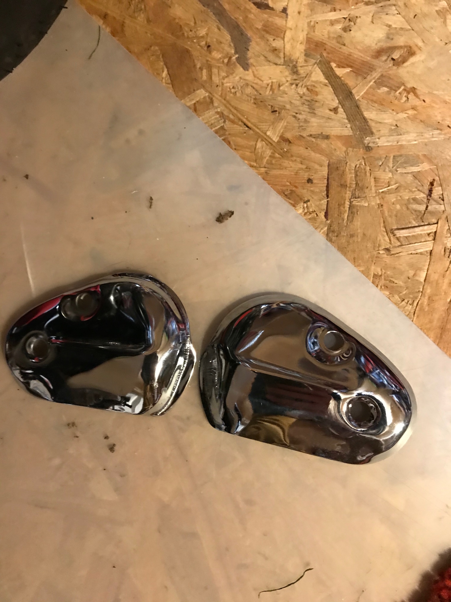 Und schon das nächste Problem. Wie krieg ich die hübschen und nützlichen Chrom Accessoires an die Supercub. In den Chromdingern sind 2 Bohrungen, an der SuperCub nur eine 6-Kantschraube.