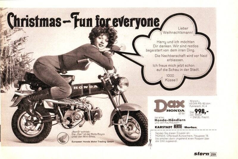 Die 70'er DAX war ein Motorrad und wegen erforderlicher FS-Klasse 1 nur ab 18 zu fahren, Leichtkrafträder gab es noch nicht.