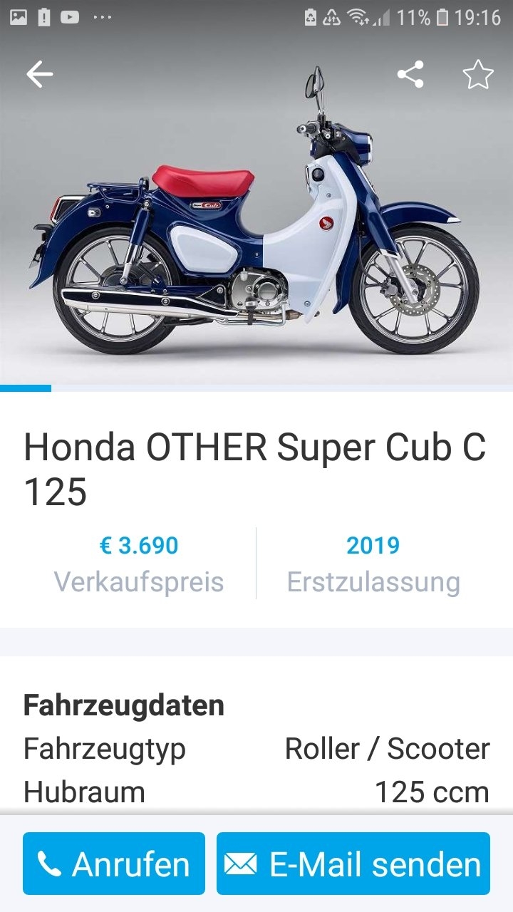 Ein Honda-Händler bietet die C125 "frech" mit Packlträger an. Darf aber erst 2019 zugelassen werden, lt. Annonce. Ich glaube dem kein Wort.
