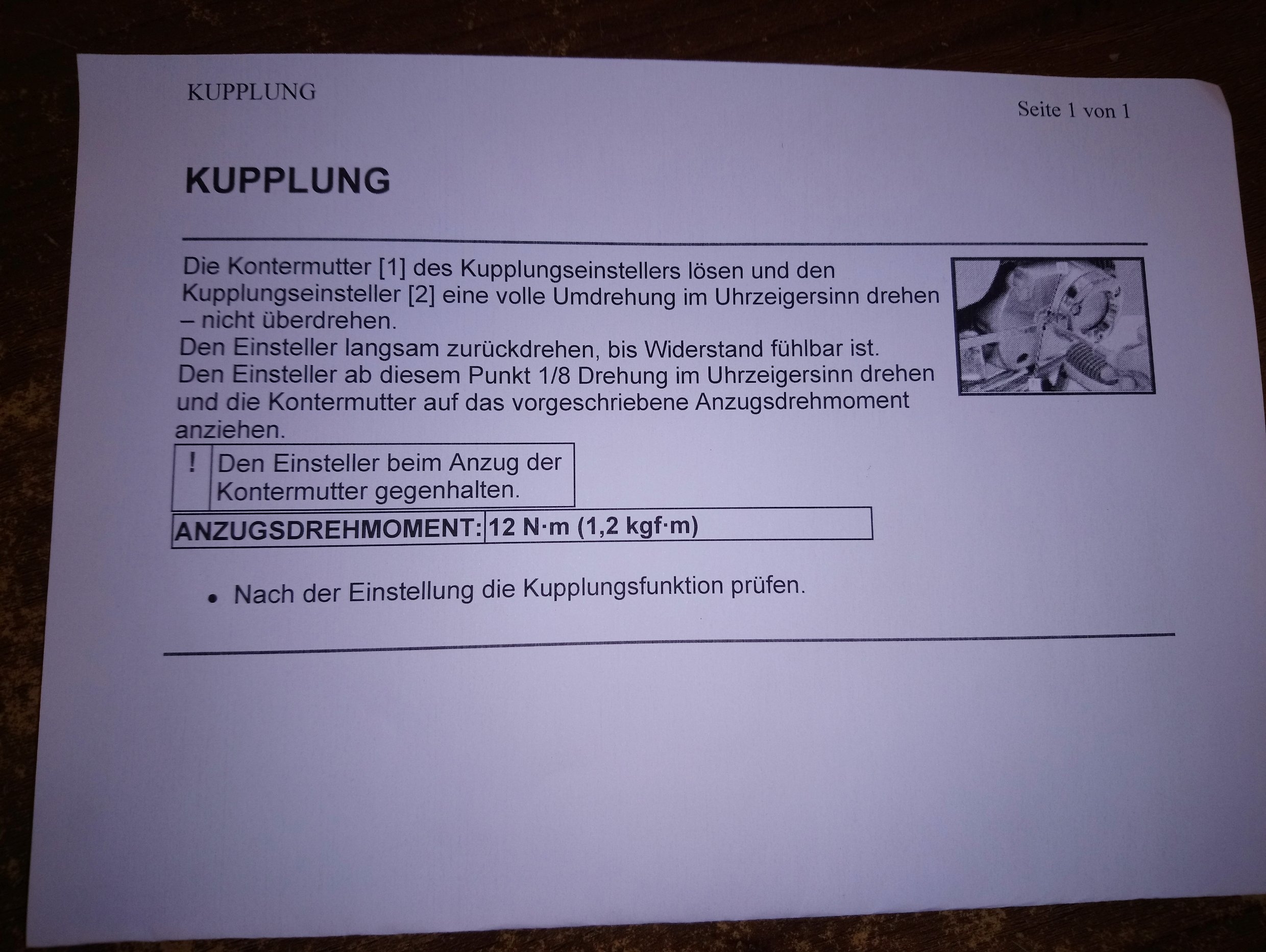 Aber viel wichtiger: Kupplung funzt nach korrekter Justage (werksseitig zu soft)