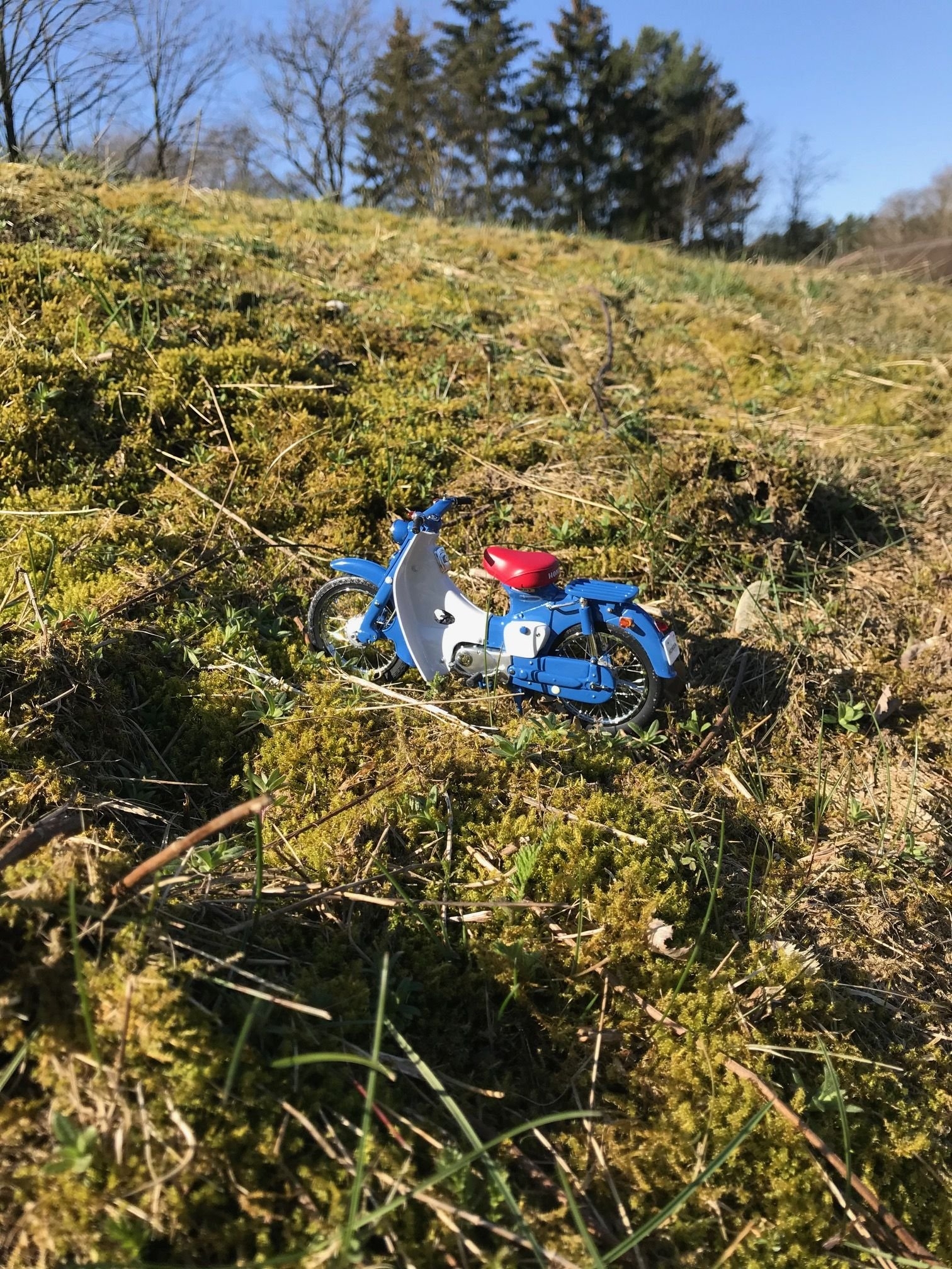Mit der Honda C100 SuperCub durch Wald und Heide. Man braucht eigentlich keine CT. (ausser fürs Wohnzimmer natürlich)