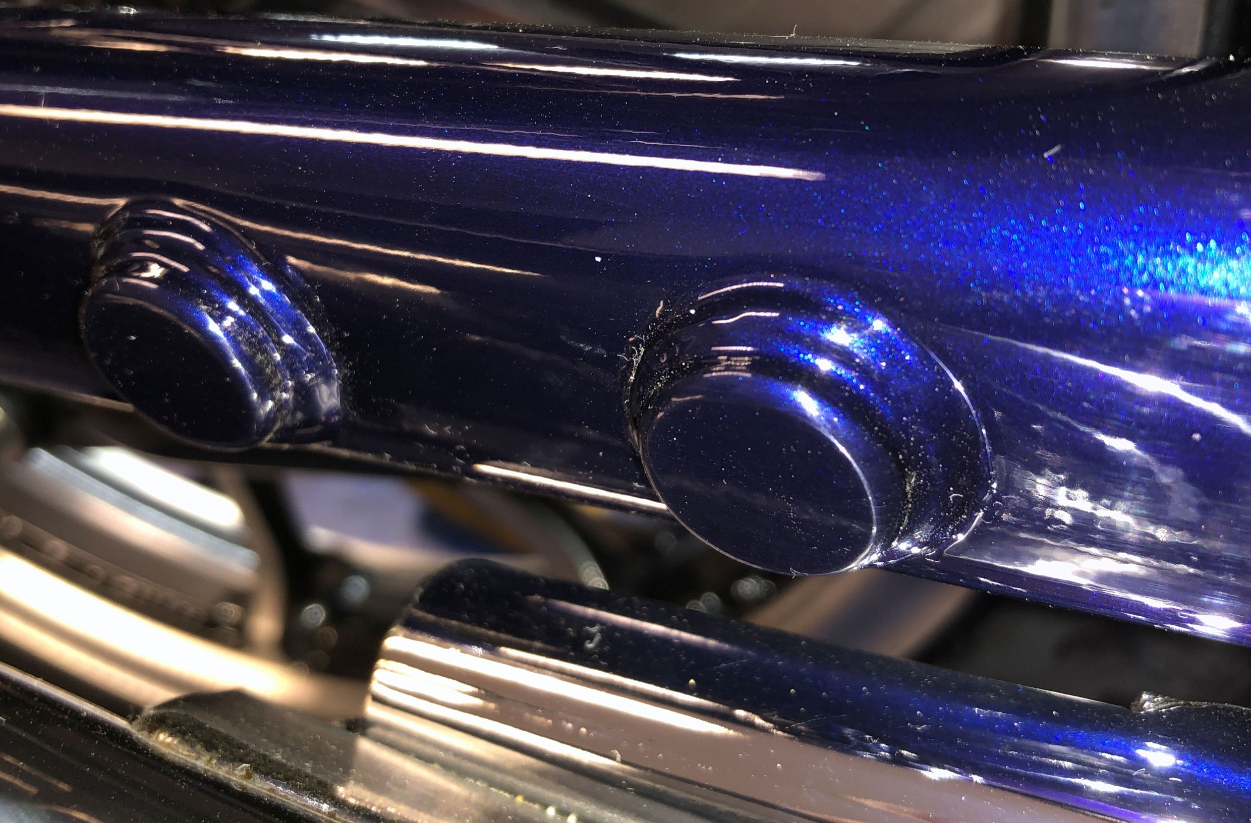 Dass Blindmuttern beidseitig zu sehen sind zeigen Torstens Fotos. Eine Mutter alleine würde das Biegemoment der Raste gar nicht aufnehmen können, dafür ist das Schwingenmaterial zu dünn. Deshalb vermute ich, dass da durchgehende Gewindehülsen eingeschweisst sind. Diese Hülsen sieht man, wenn man hinten IN die Schwinge guckt, die ist da nämlich offen (?). Ob letztendlich in diese Hülsen auch Gewinde reingeschnitten sind ... man kann es ja nachholen.
