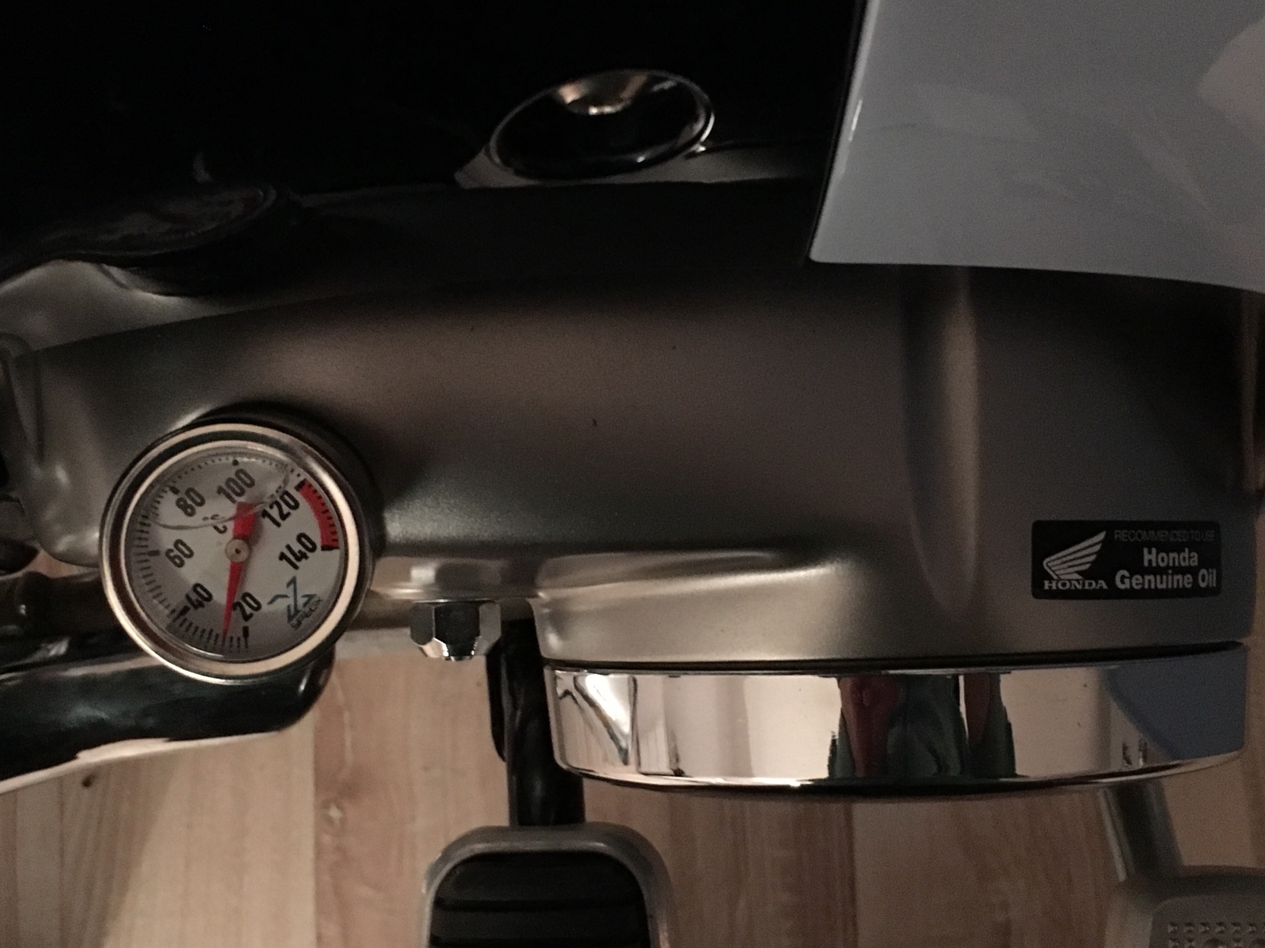 Ich hab den schwarzen Honda Genuine Oil Aufkleber abgekratzt. Und alle anderen idiotischen Warnkleber.