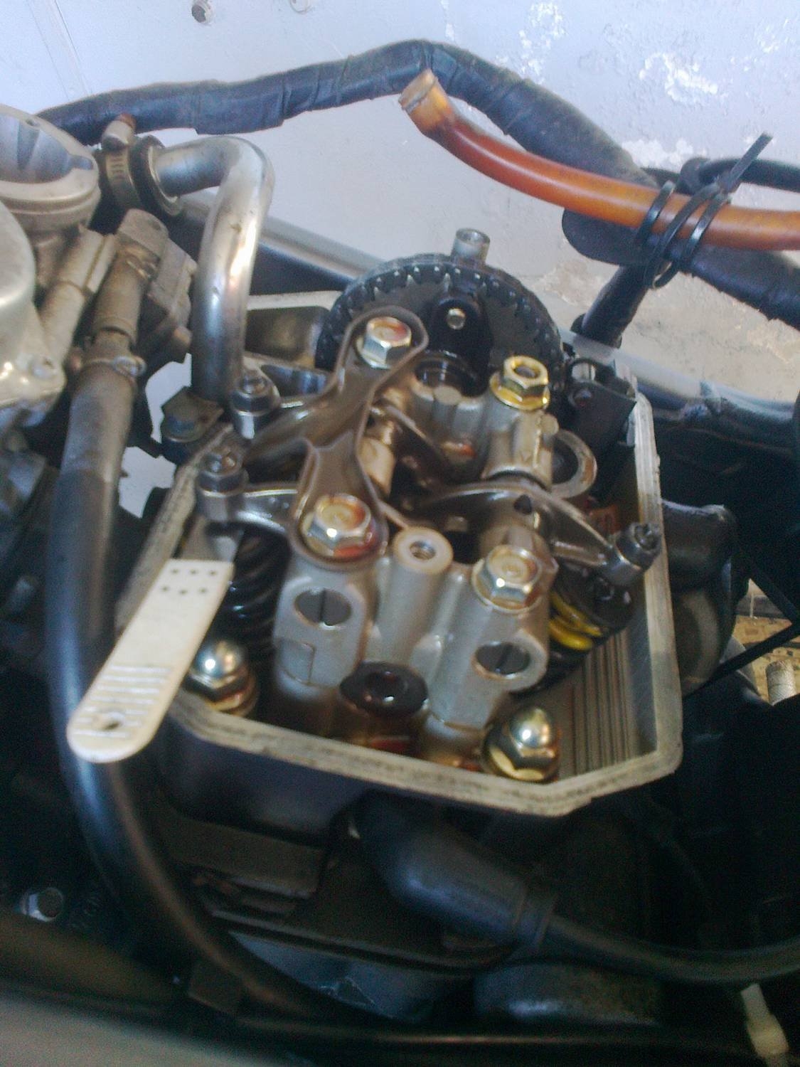Kerzennuss gelötet, Kerzen getauscht, Ventile eingestellt, frisches Kühlwasser eingefüllt, Bremssattel vorne revidiert,