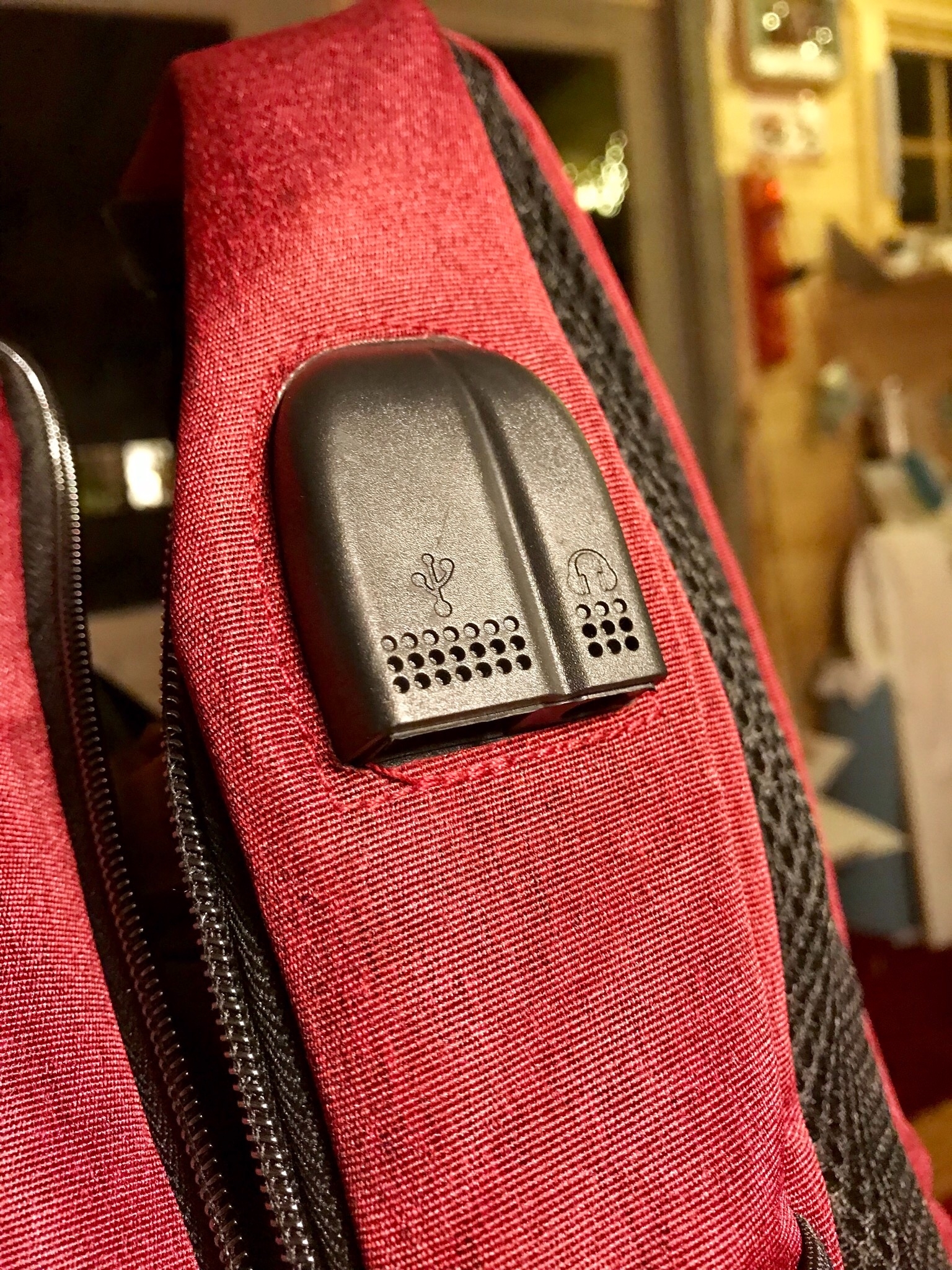Natürlich mit USB Anschluss, um über die Powerbank das TomTom Navi nachzuladen.