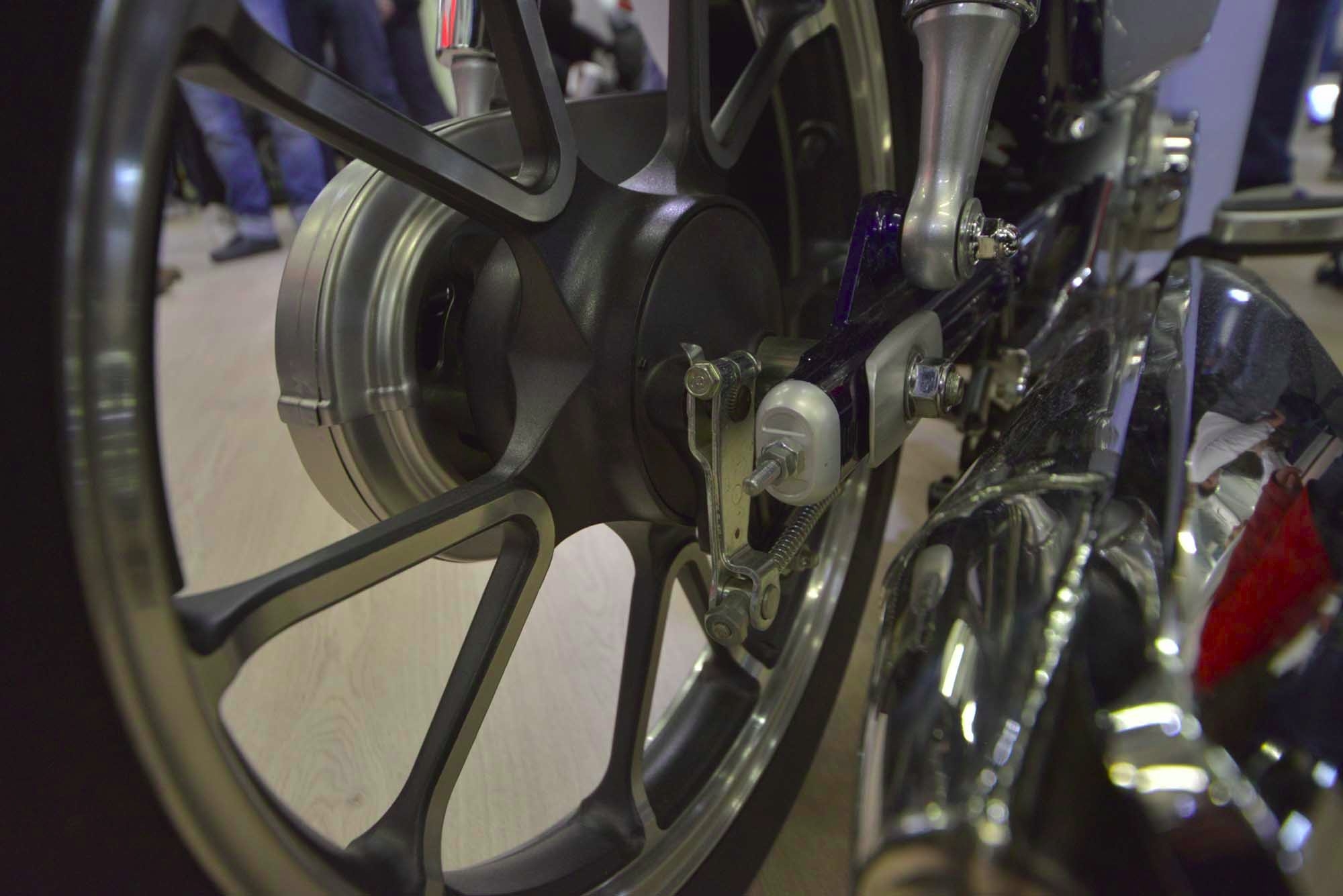 Lackierte Schwinge mit sauberen Abschlussendstücken in Alu. Nett gemacht.