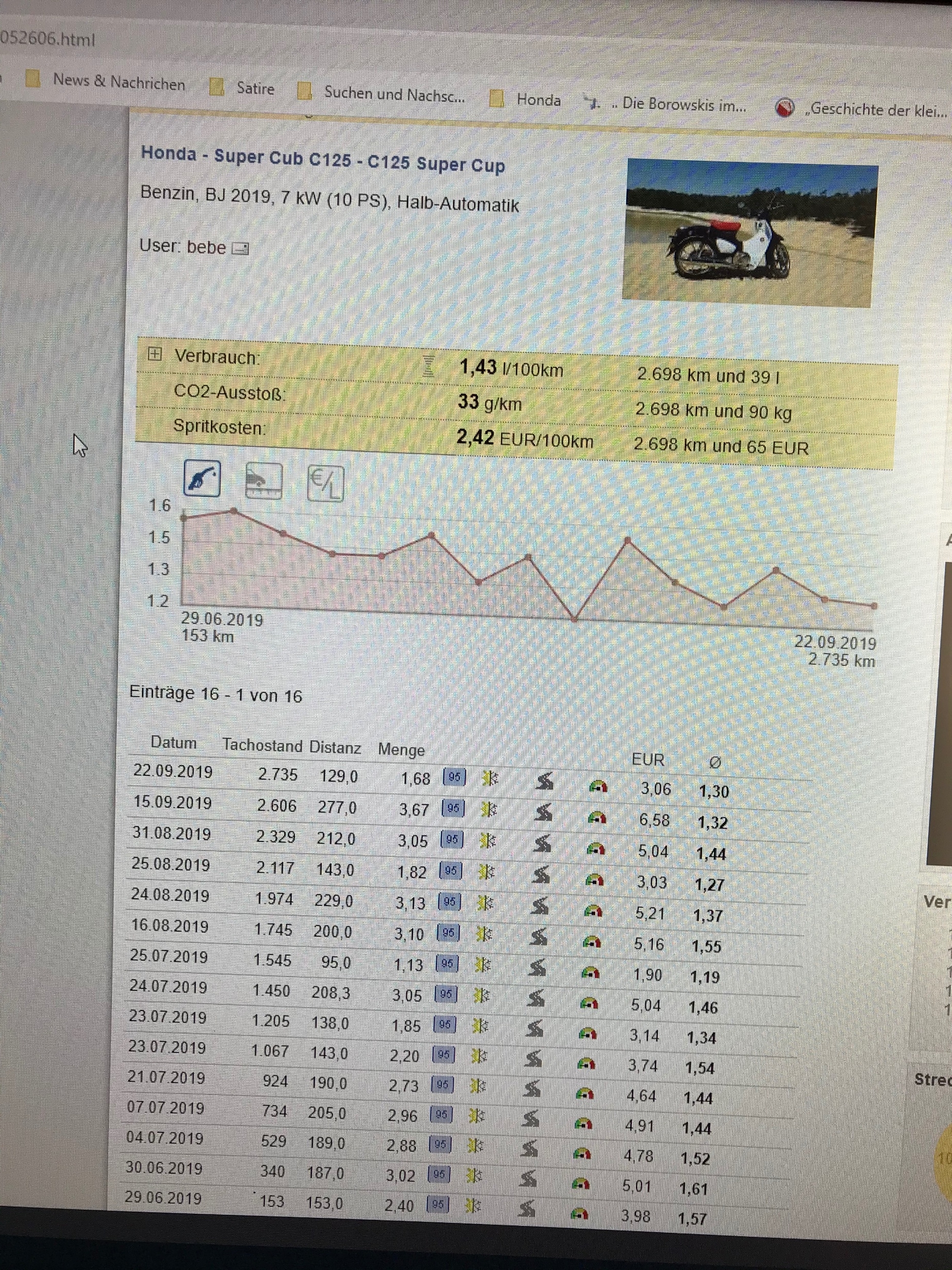Ich habe grad mal bei Spritmonitor nach der Super CUB geschaut.