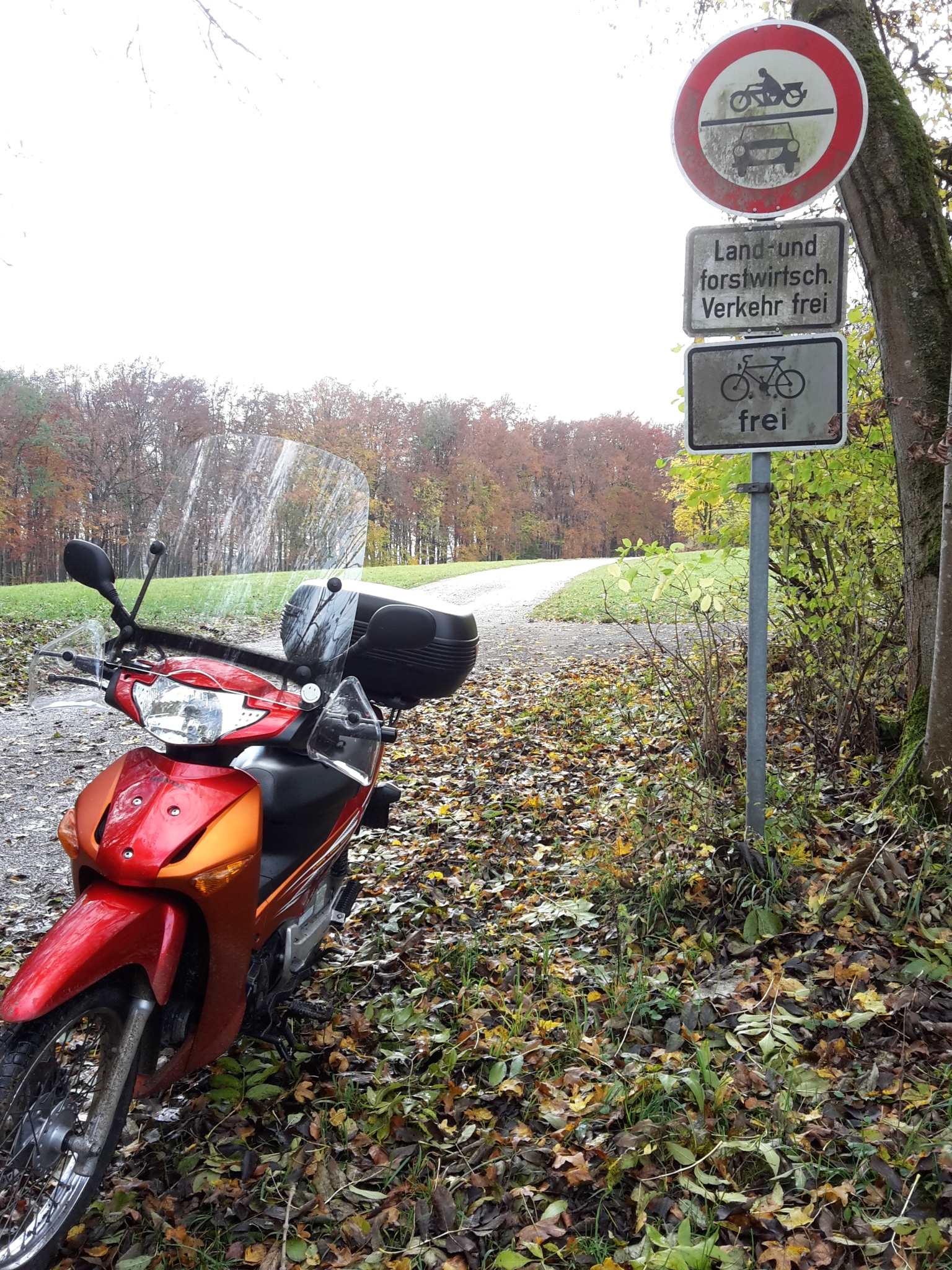 Es gibt Feld- und Waldwege auf der Alb, die wollte ich schon lange mal mit dem Moped erkunden. Das kann man aber am Wochenende, oder unter der Woche bei schönem Wetter nicht. Es sind einfach zu viele Leute unterwegs. Radfahrer, Hundegassigeher, Wanderer, Spazierer und Jogger. Die nerven nur. Heute waren die Bedingungen ideal. In ca. zwei Stunden keinem Schwein, keinem Radfahrer, Hundegassigeher, Wanderer, Spazierer, Jogger und Landwirt begegnet. Auch keinem Förster.