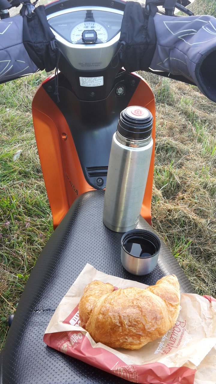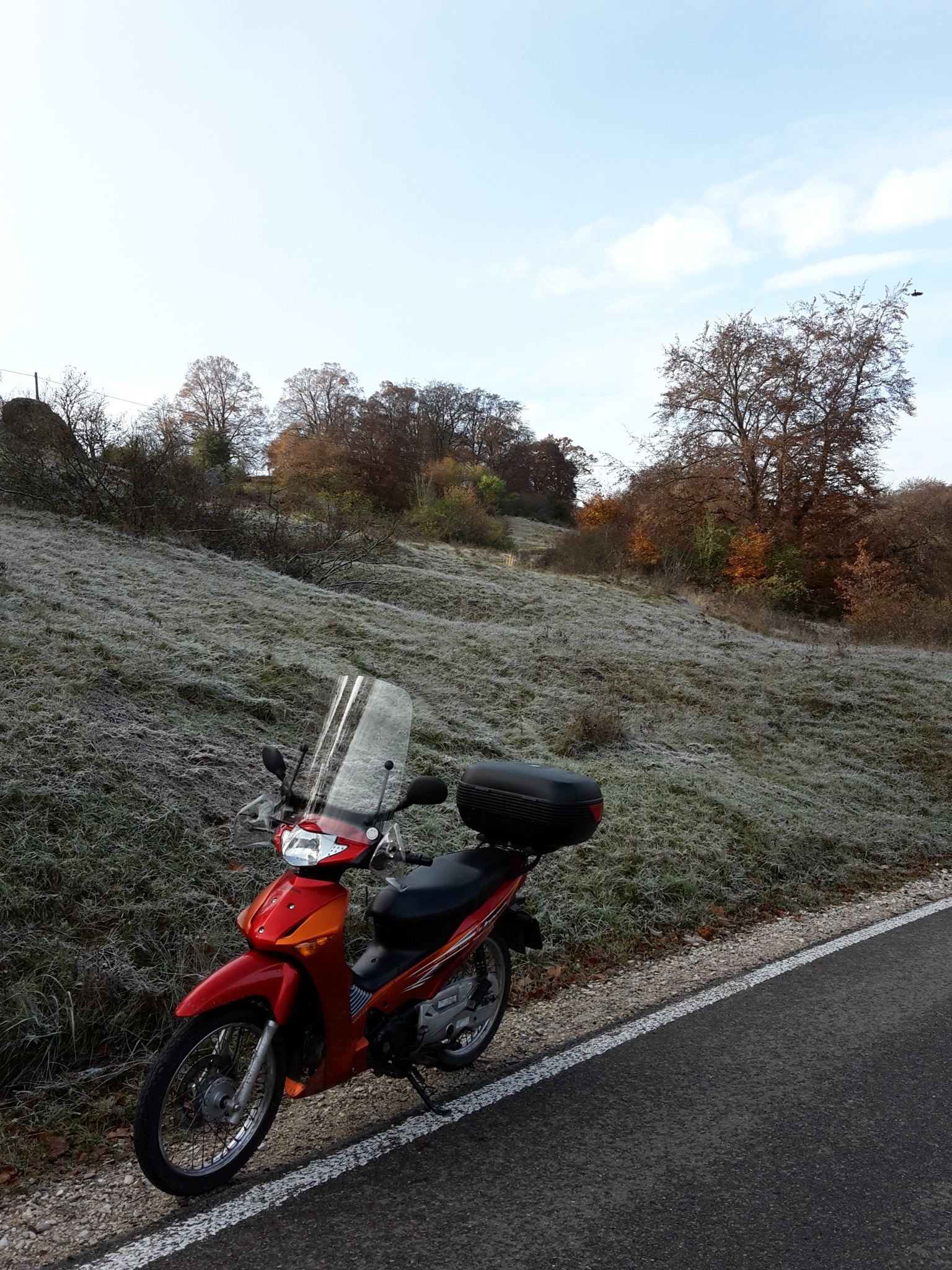 Heute hatte ich frei und wollte den Tag nicht ungenutzt verstreichen lassen. Der Wetterbericht sagte 4° und ab und zu Regen voraus. Also bestes Wetter, um mit der Inno mal zig Kilometer Feldwege unter die Räder zu nehmen, die eigentlich nicht erlaubt sind. Vorher hatte ich mir noch bei Aldi Fausthandschuhe (Ski) für 6 Euro gekauft. Gleich das Ergebnis vorweg. Obwohl meine Inno keine Griffheizung hat, habe ich in den über drei Stunden Fahrt, bei unter 5°, an den Fingern nicht gefroren. Mit den normalen Motorradhandschuhen habe ich bei 5° nach 15 Minuten kalte Finger. Kauftipp!