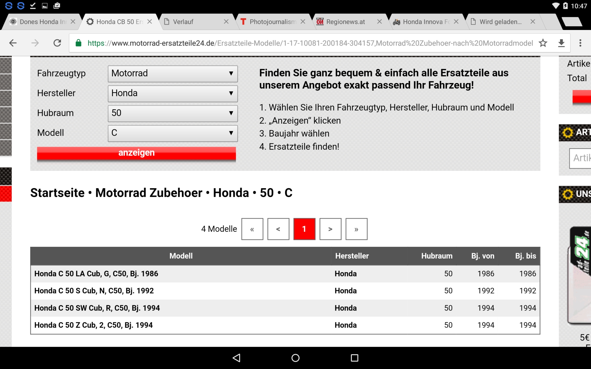 - Fahrzeuge: Vision 50 NSC AF72 und 110 NSC JF31, Innova ANF 125i JC37A , CB 125 F JC84, Kawasaki Z 750 GT