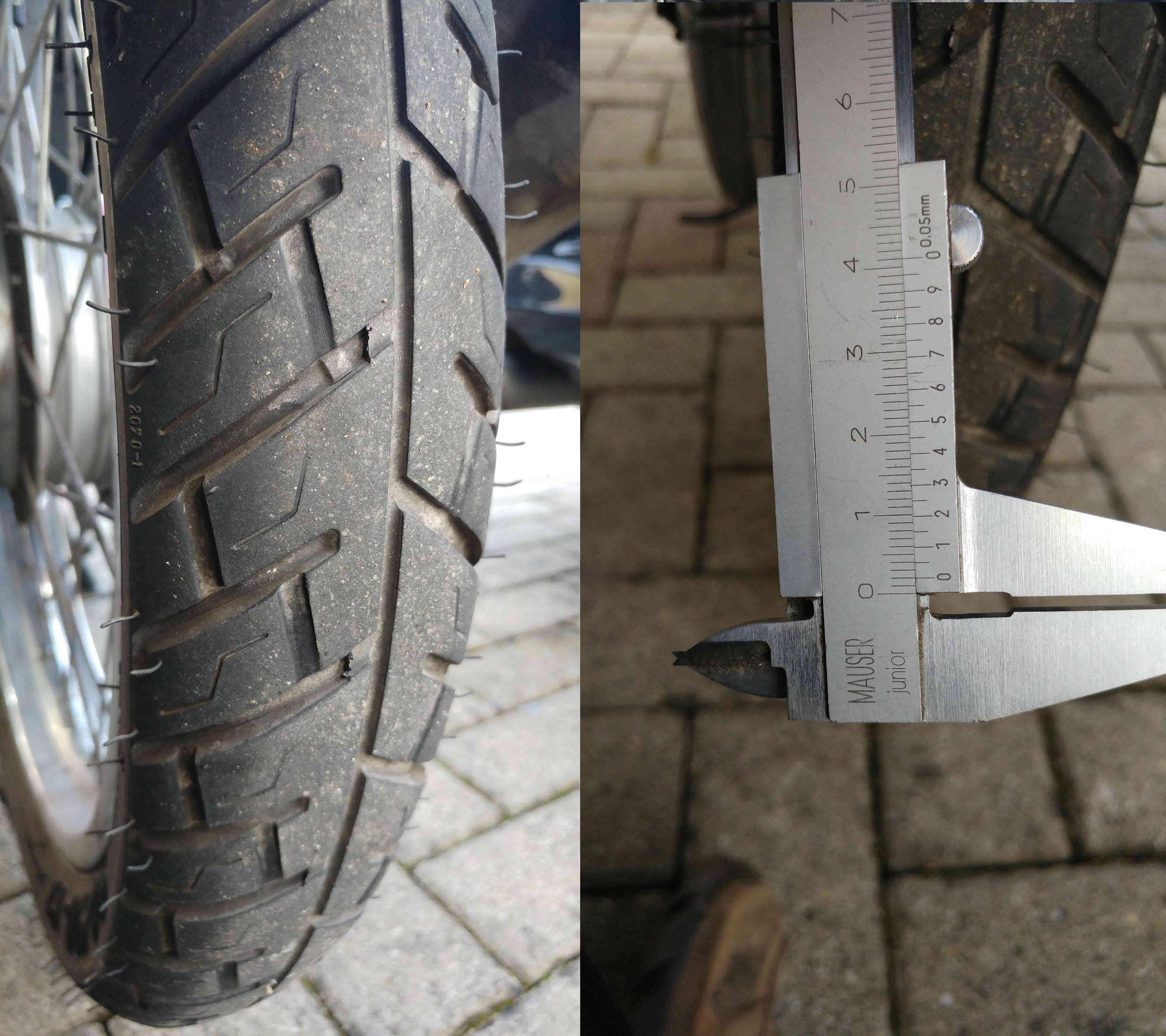 Also profilmäßig müssen ein mm sein. Beim Auto merkt man das schon deutlich bei Nässe wenn das Profil gegen null geht. Glatte pellen gehören nicht aufs Moped, jedenfalls nicht bei regen. Sag selbst ich...