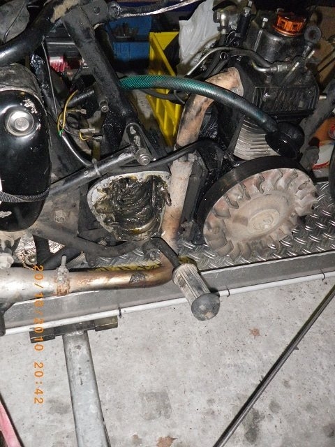 Nach dem wir das Motorrad zerlegt hatten konnten wir sagen das so gut wie alles inne Wurst war na ja immerhin ein Rahmen mit Geschichte :wein: Aber es sollte weiter gehen wir suchten alle Getriebe Teile zusammen die auf verschiedenen Kiesten verteilt waren Säuberten sie und bestellten Teile die wir zur Reparatur brauchten. Der Motor hatte keine Kompression mehr und müsste auch Komplett Überholt werden. Wir entschlossen uns dann dazu da Johannes noch einen Neuwertigen Motor hatte ihn komplett zu Tauschen das Getriebe wurde zwar Repariert machte aber noch Schwierigkeiten und wurde ebenfalls durch ein neues Ausgetauscht sowie Kupplung und Primär Kette plus Spanner.