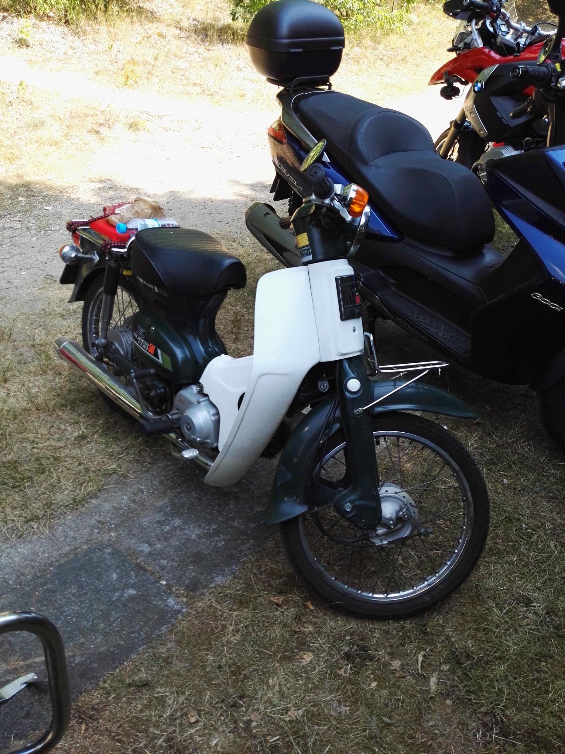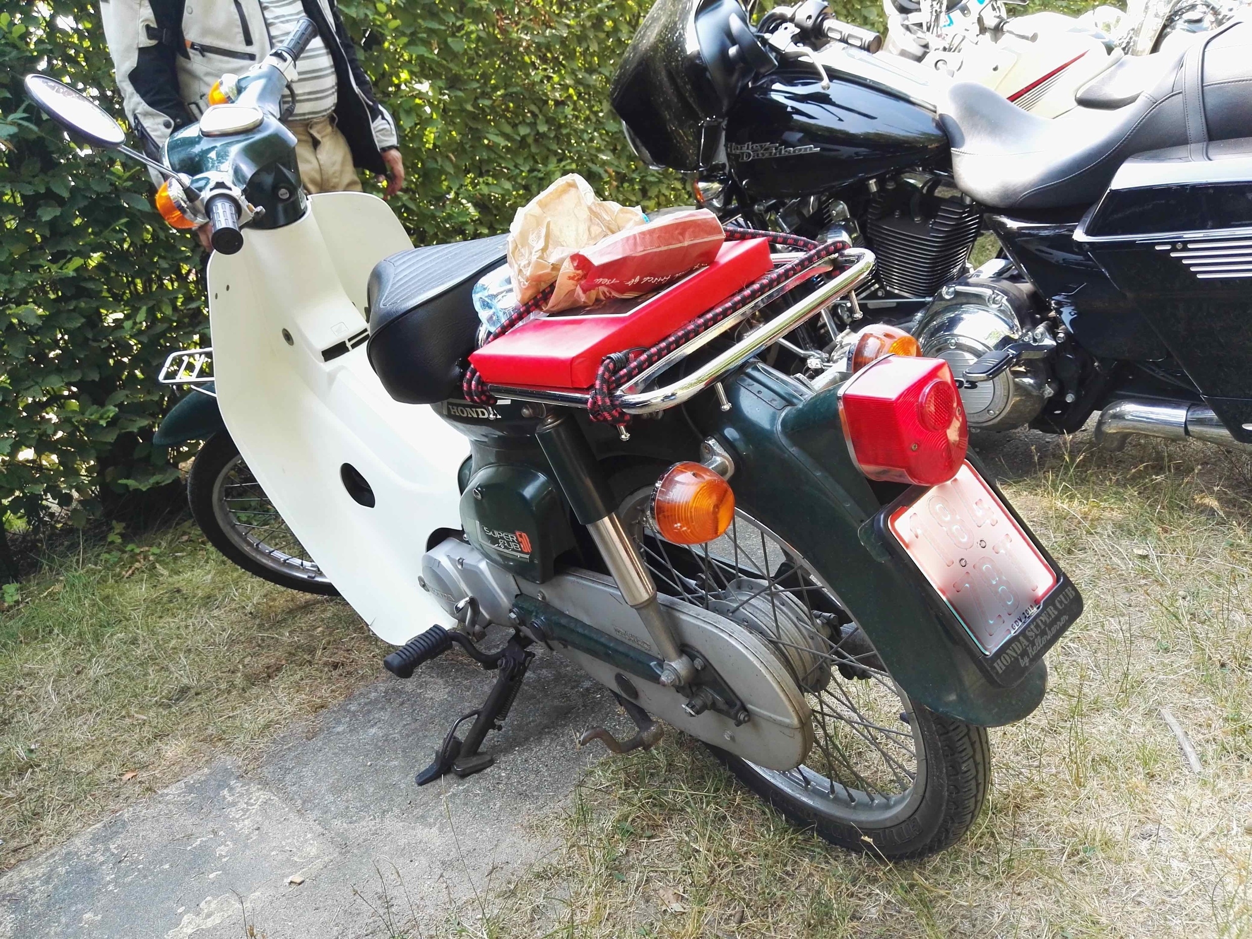 Und er hat einen Heckträger für seinen PKW auf dem er die CUB tranportieren kann/darf (siehe verlinktes Bild) ;)