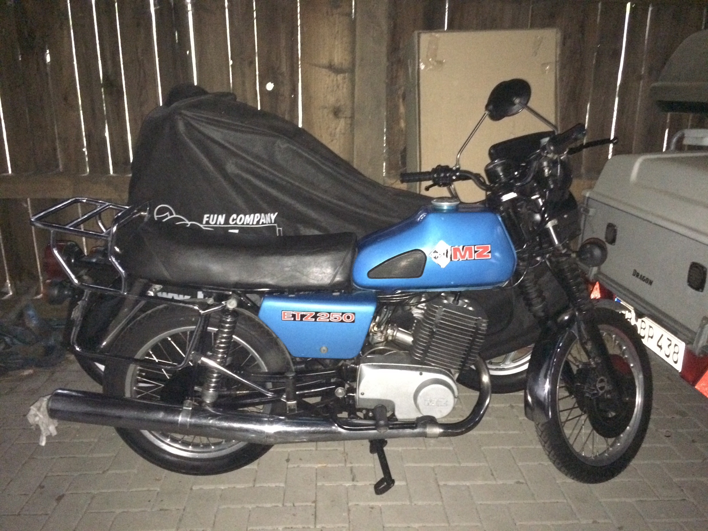 Sachsen-Harley, Klemmzett, Emme, meine ETZ 250 von 1985 steht wieder bei mir. Mir der Handschrift im Detail meiner Jugend. Lima Regler Motoguzzi, Piranha Zündanlage. Ein paar Falten, Dellen, Kratzer mehr, so sind wir halt zusammen älter geworden. Spuren des Lebens.